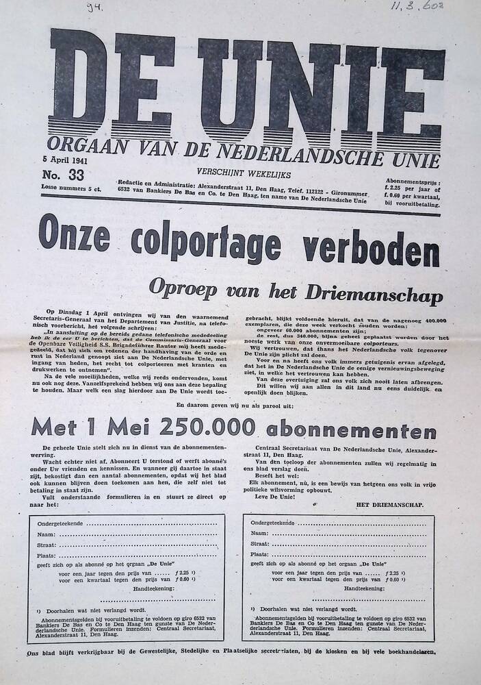 De Unie, 5 april 1941