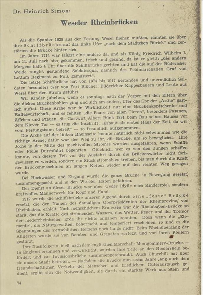 Artikel uit een boek van Heinrich Simon - Weseler Rh...