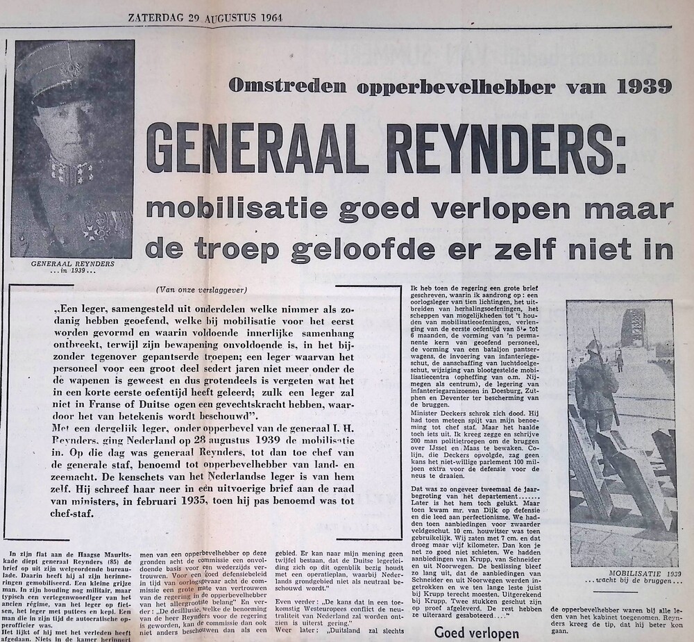 Omstreden opperbevelhebber van 1939 Generaal Reynders.