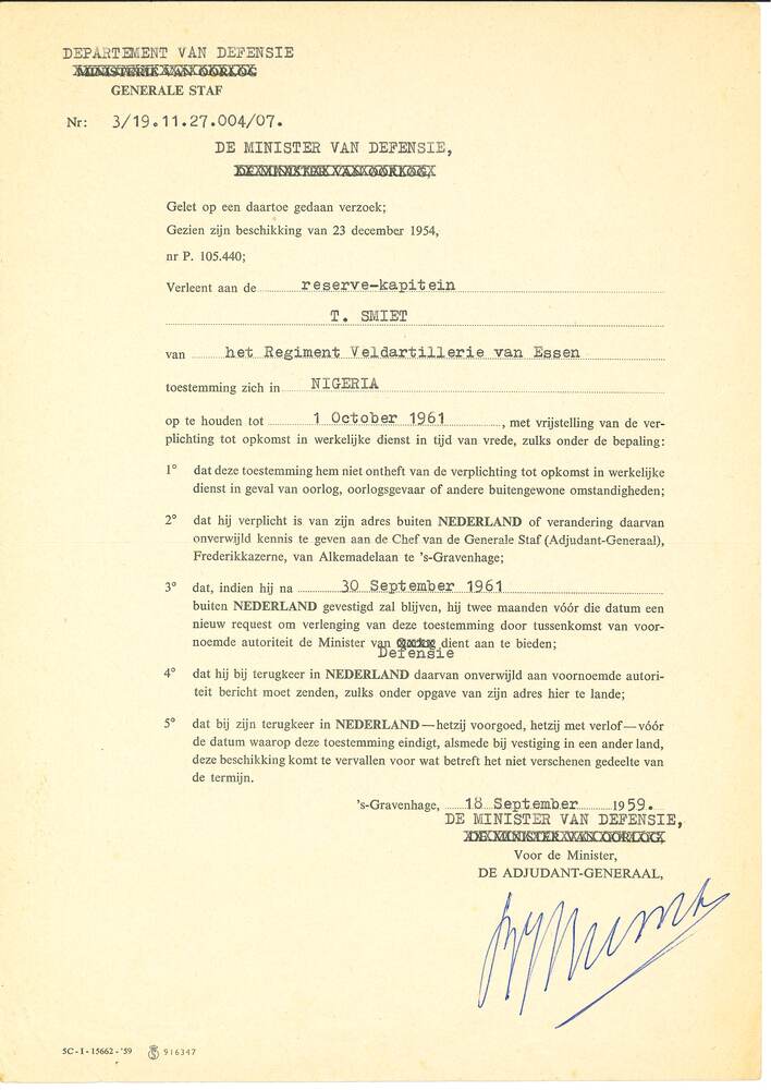 De minister van Defensie, 1959