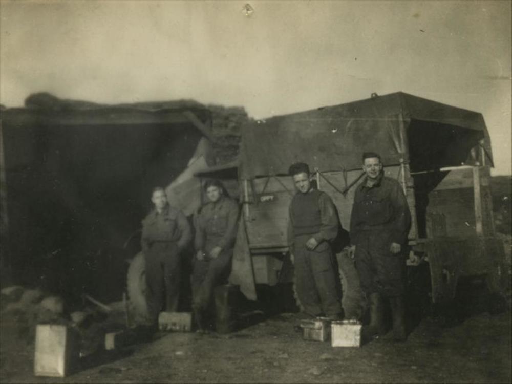 vier Canadese militairen bij vrachtwagen