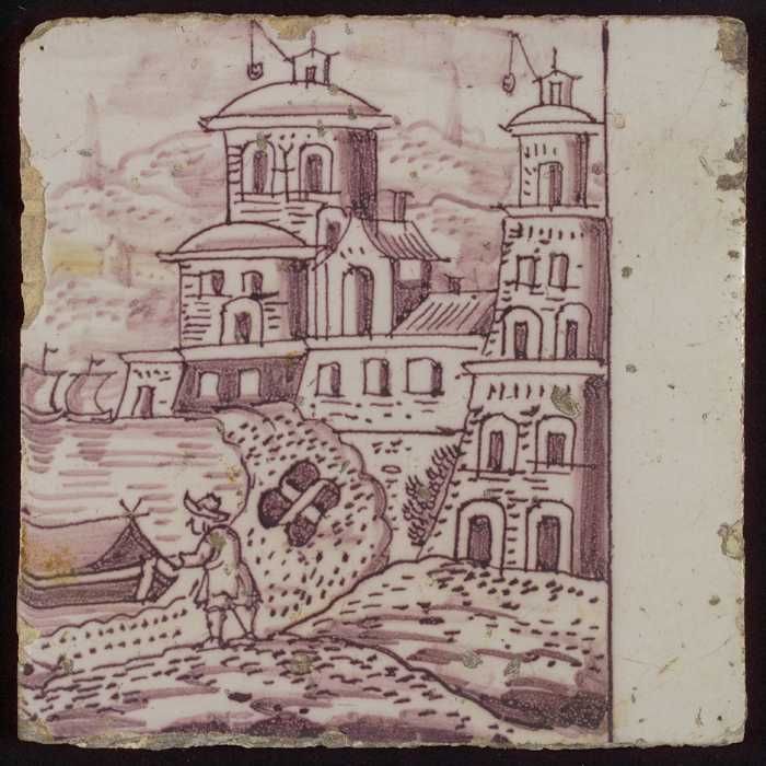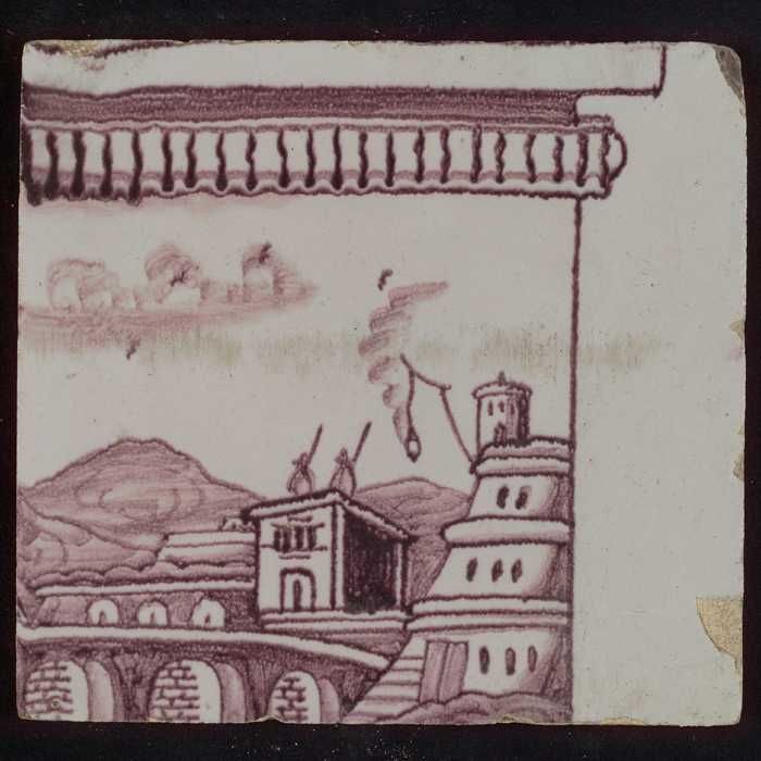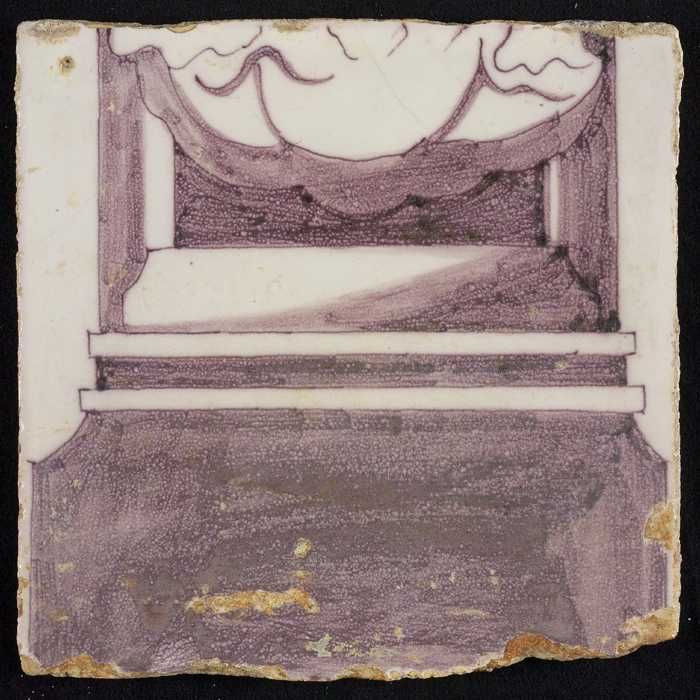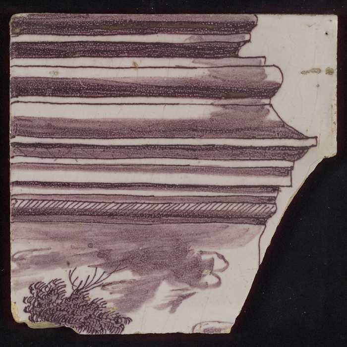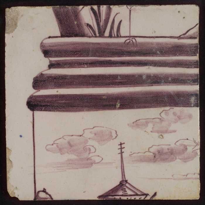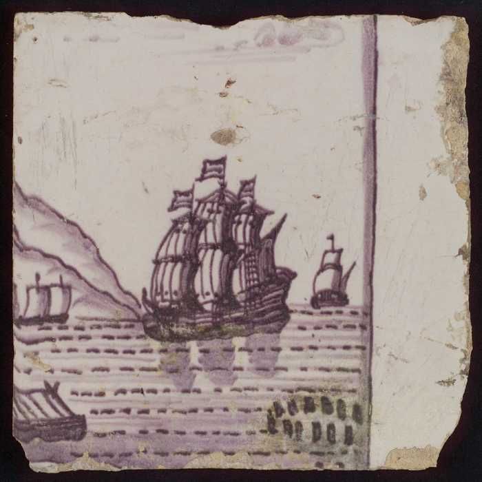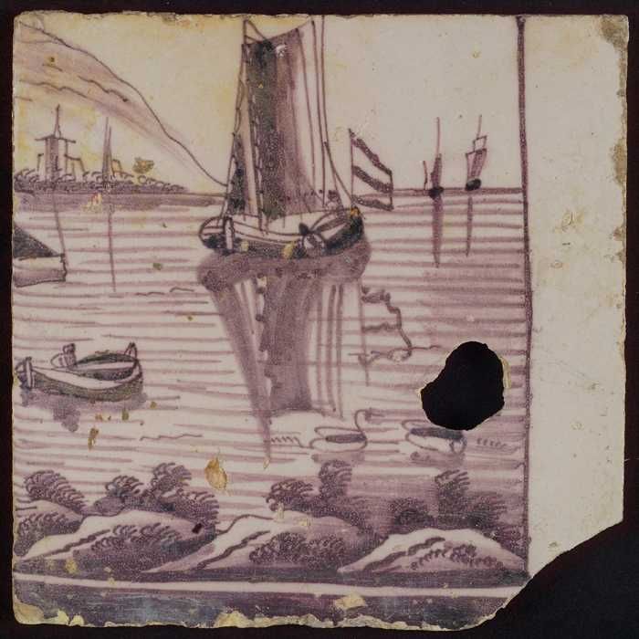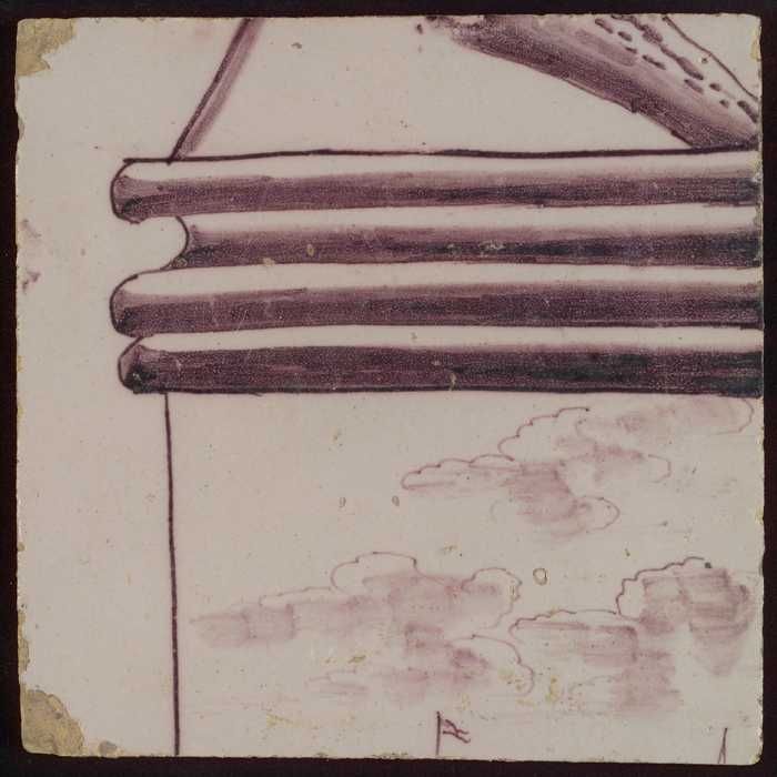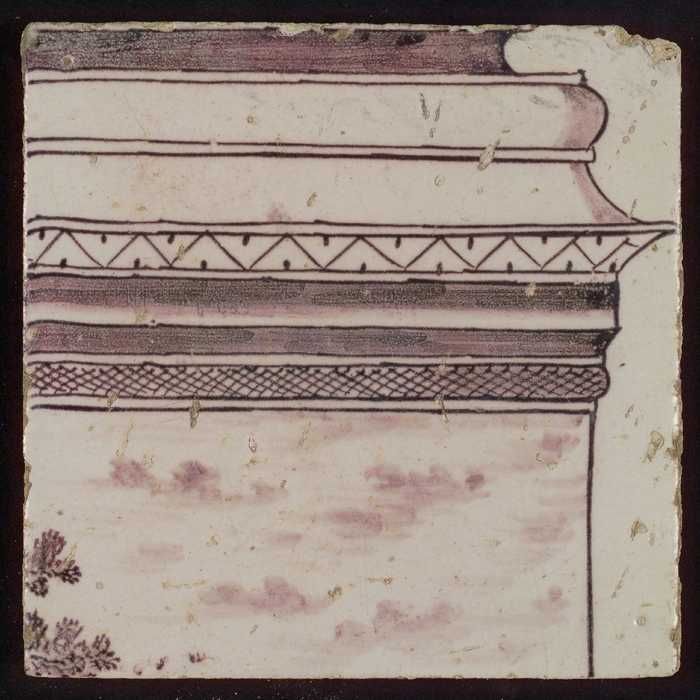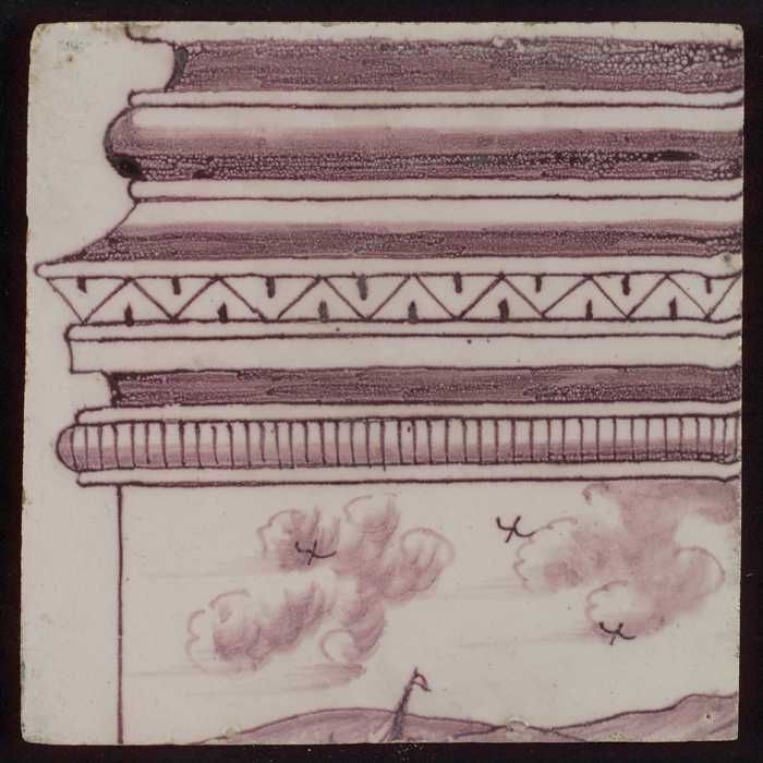 Tegel van paars pilaster met basement waarop schepen...