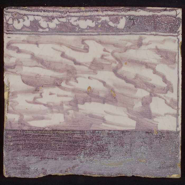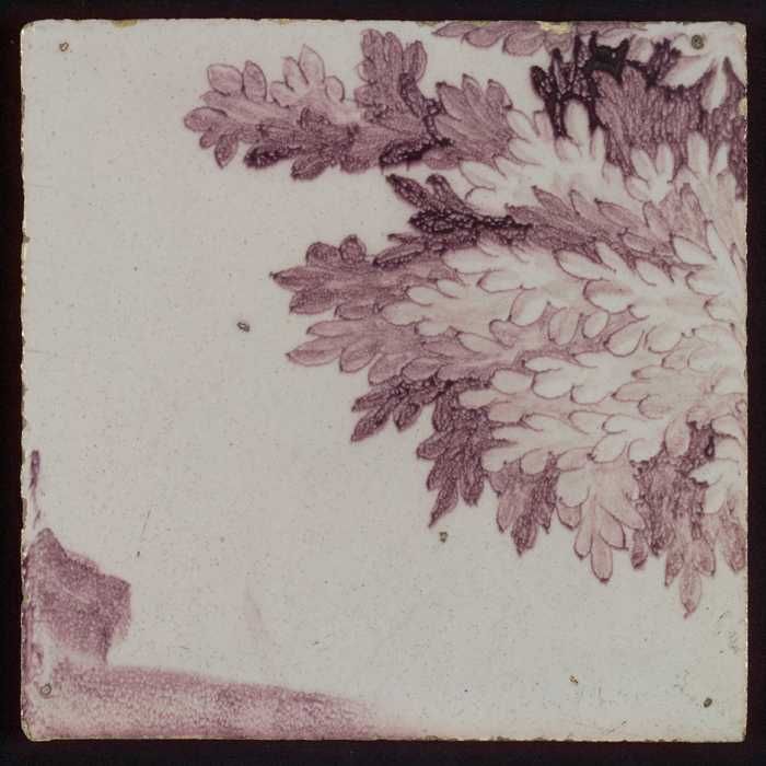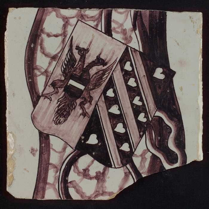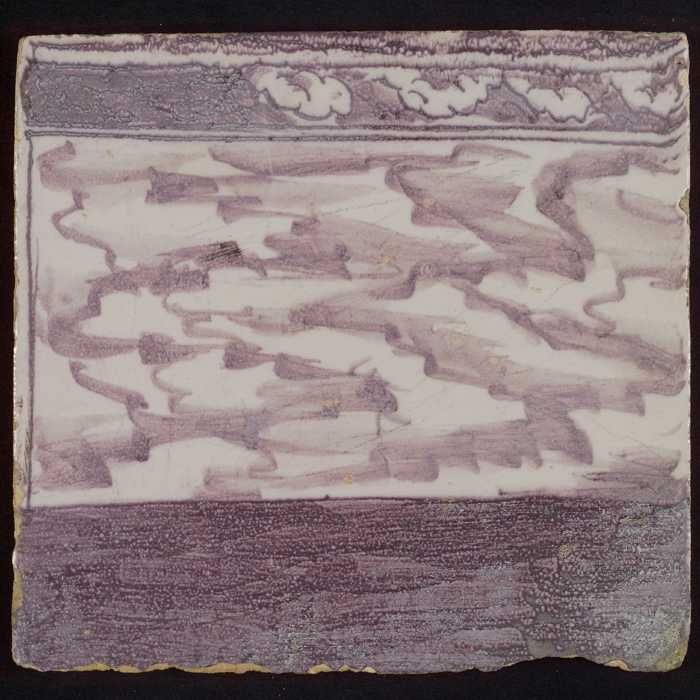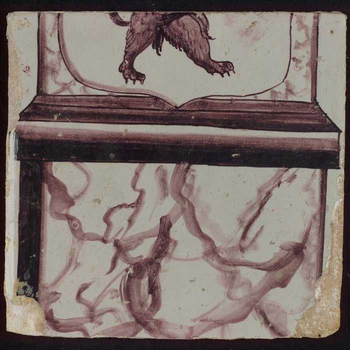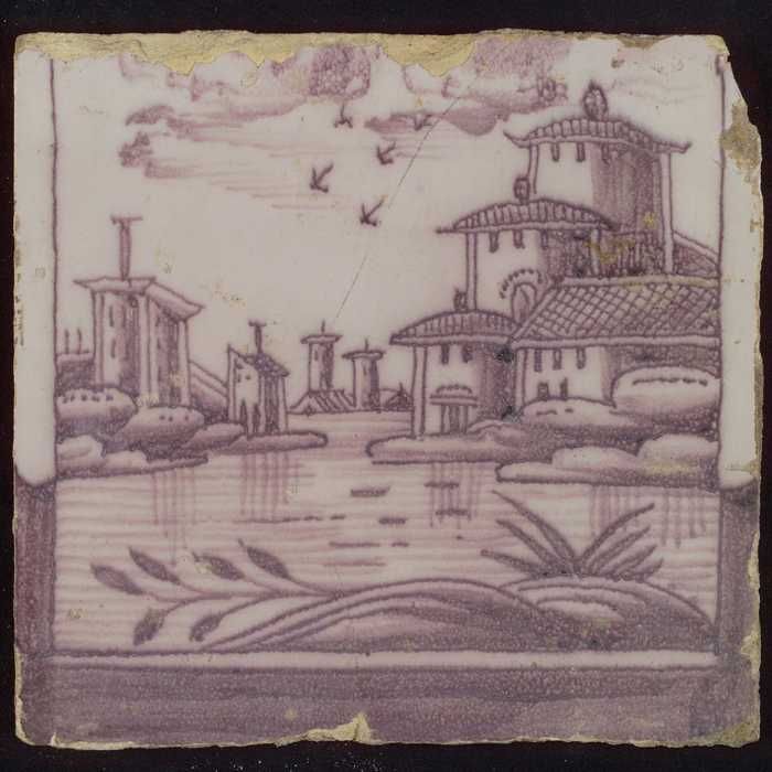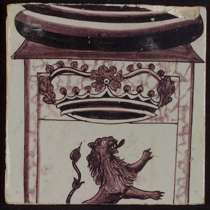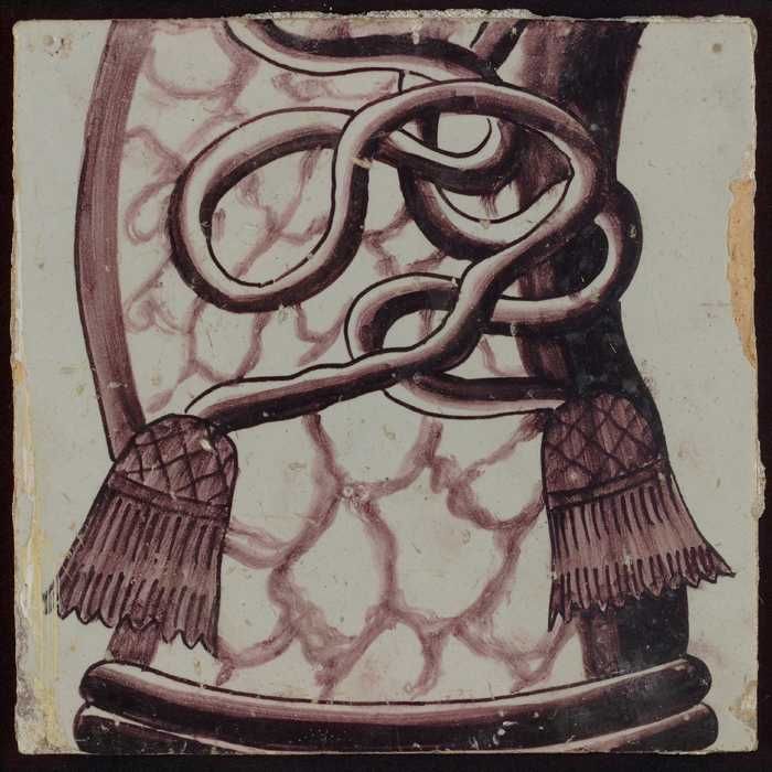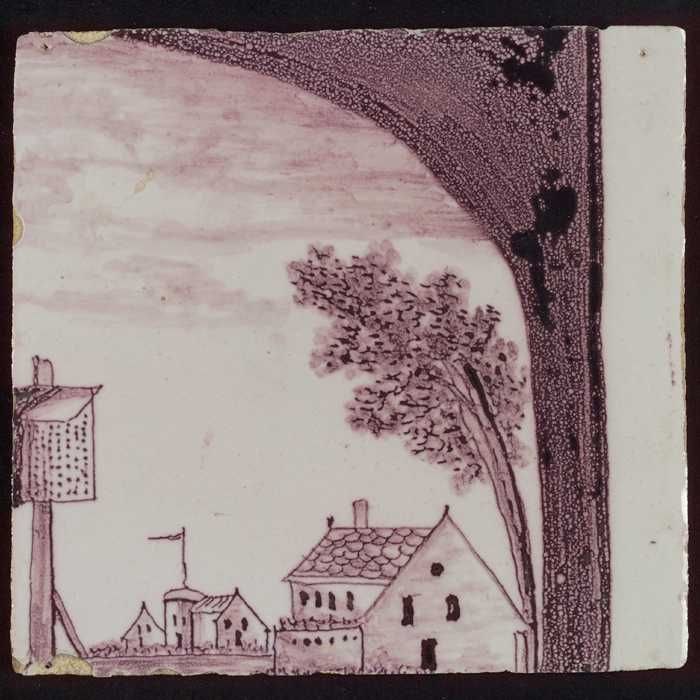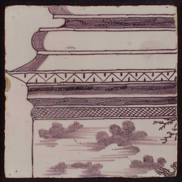 Tegel van paars pilaster met basement waarop schepen...
