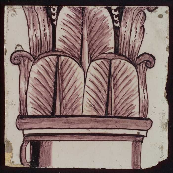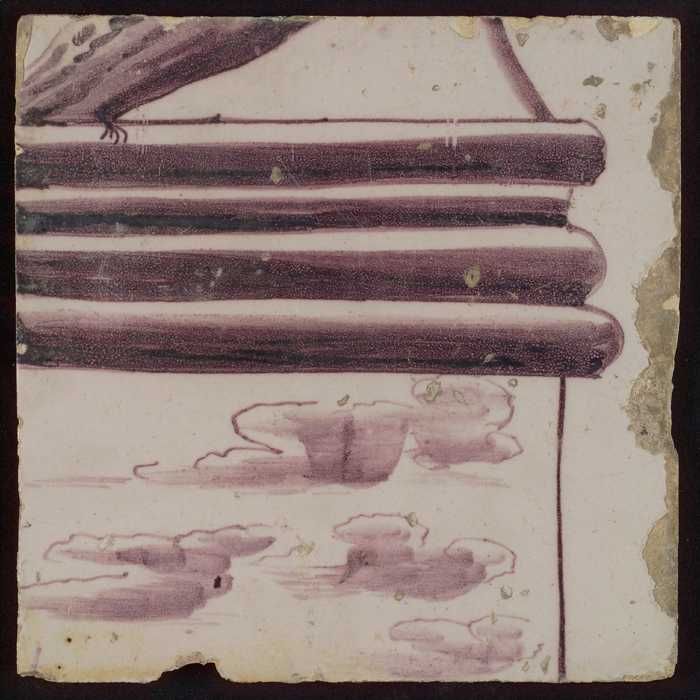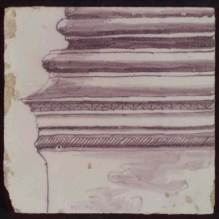Tegel van paarse pilaster met deel van ingekleurd ba...
