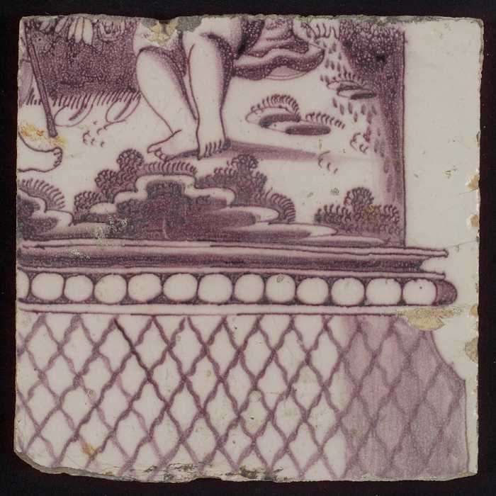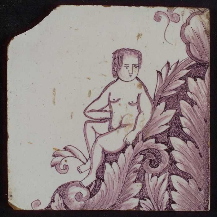 Paarse tegel met putto op bladeren