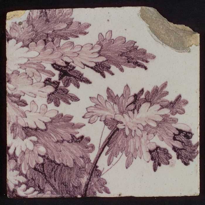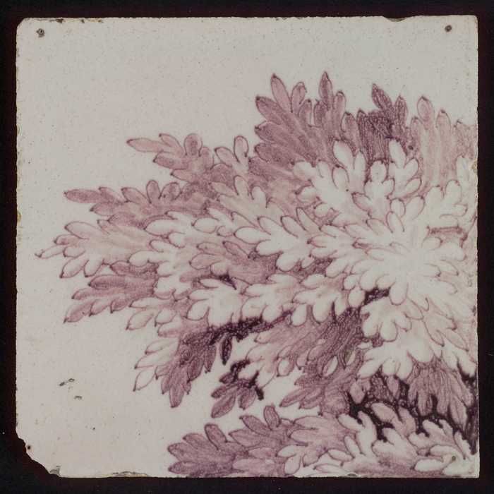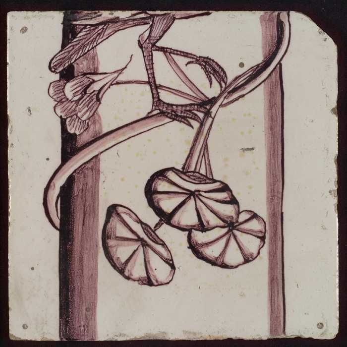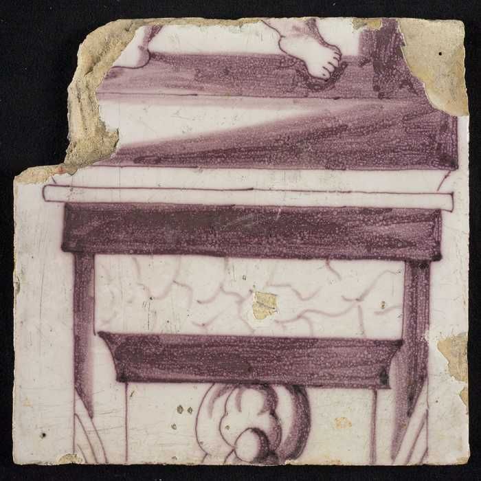 Losse tegel uit pilaster met decor in paars, deel va...