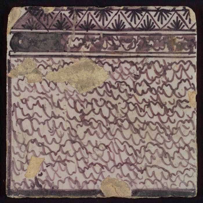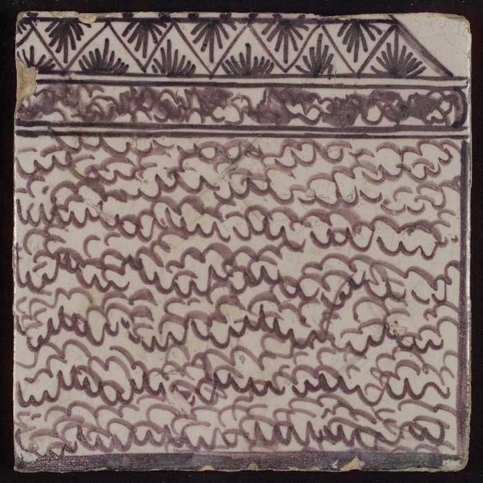 Tegel van paarse pilaster met deel van gedecoreerd b...
