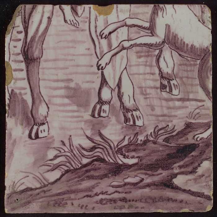 Tegel van paars tableau met poten van dieren