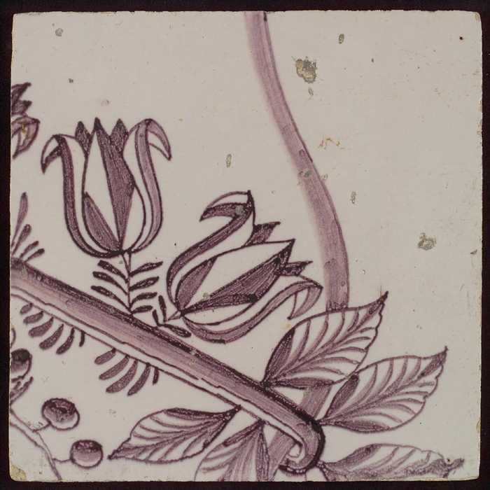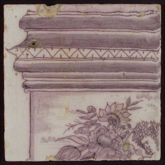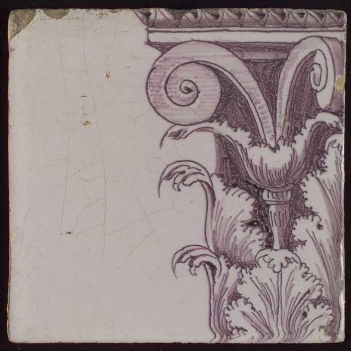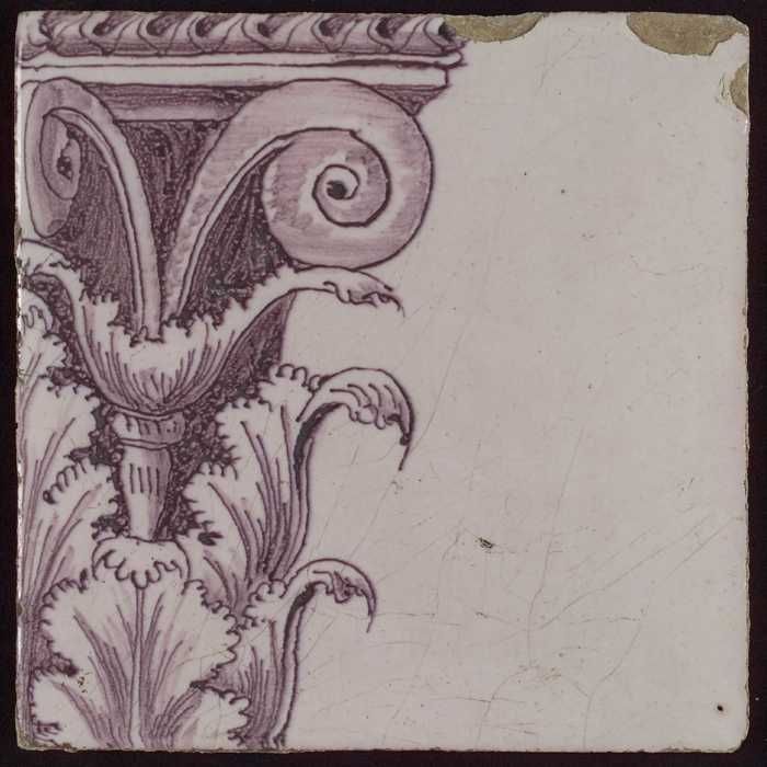 Tegel van paars tegelpilaster met gedecoreerde korin...