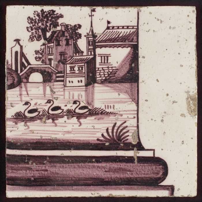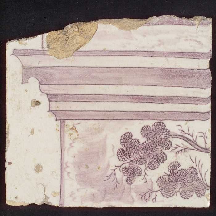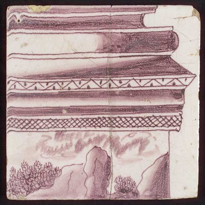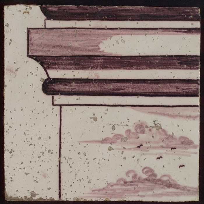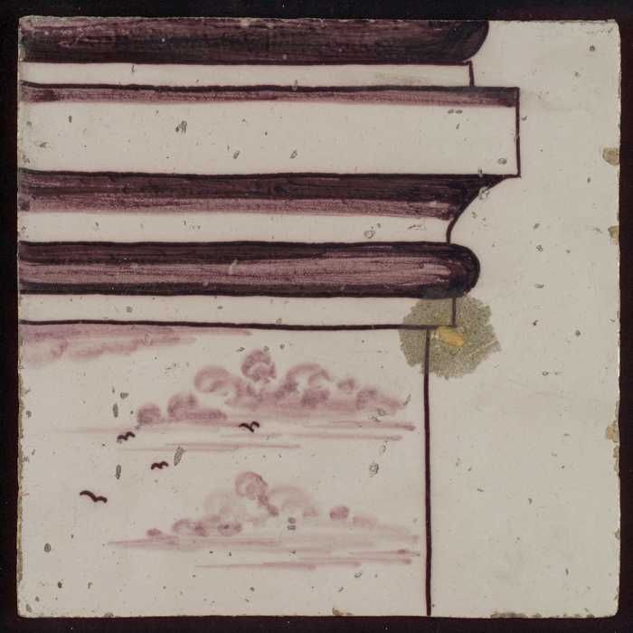 Drie tegels van paarse pilaster met gemarmerde kolom...