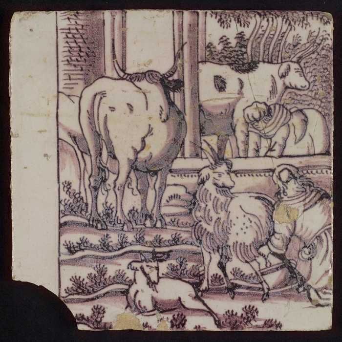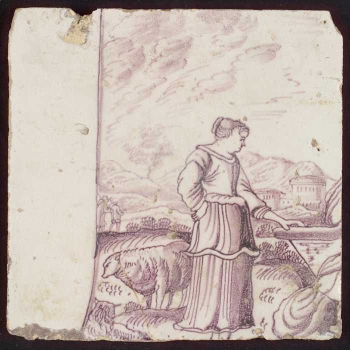 Tegel van paars pilaster met getordeerde zuil waarop...