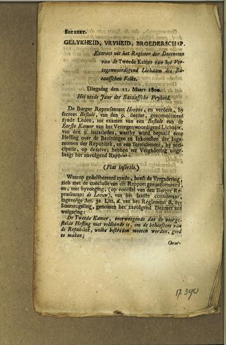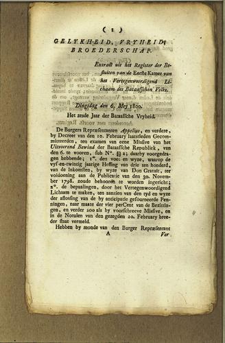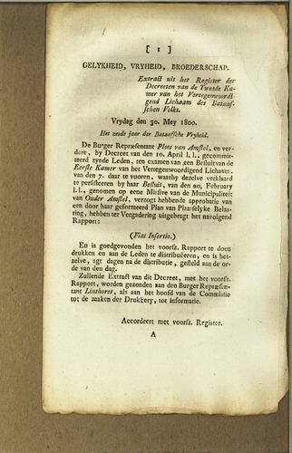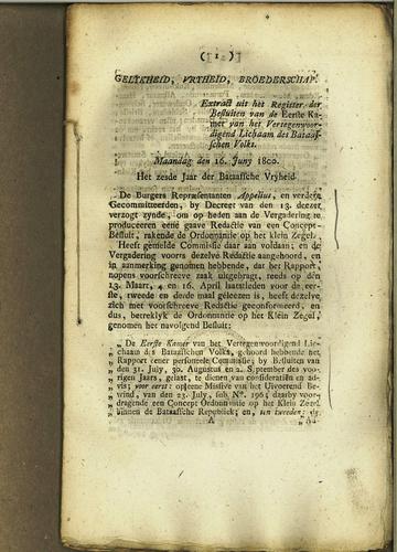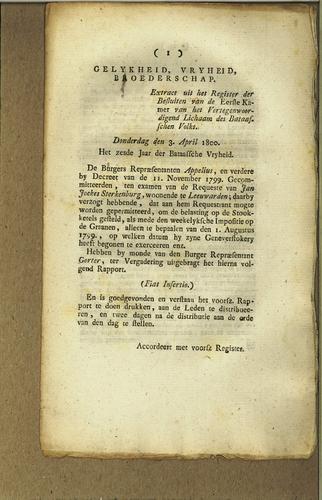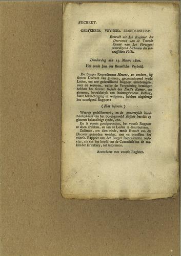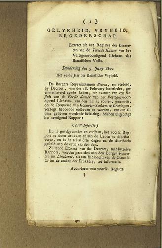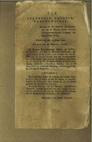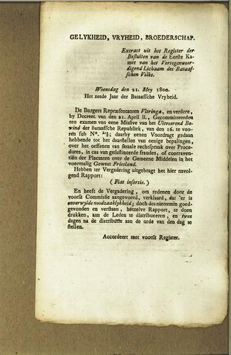 Plakkaat, niet bekrachtiging besluit, 1800