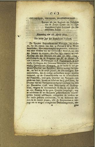 Plakkaat, buitengewone heffing, 1800
