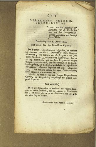 Plakkaat accijns op jenever, 1800