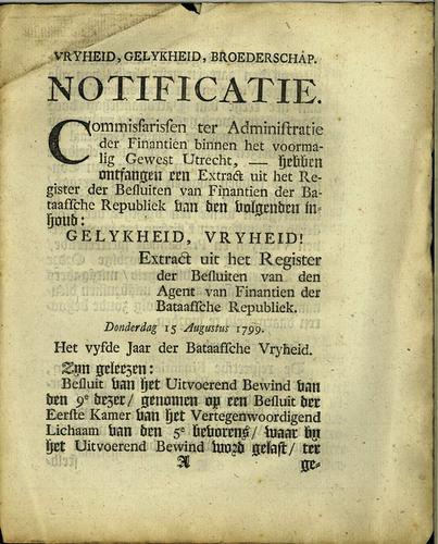 Plakkaat, nieuw belastingstelsel, 1799