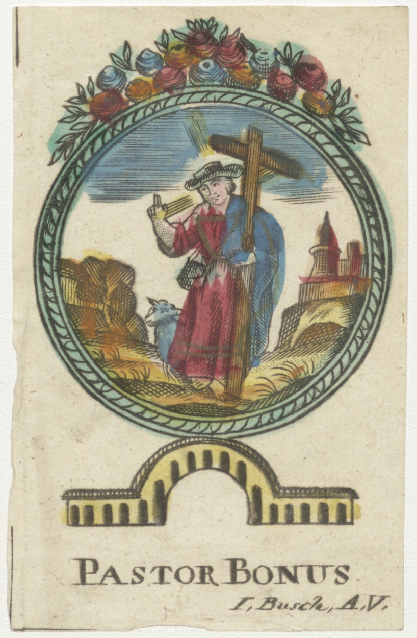 Christus Pastor Bonus, ingekleurd, kz. Droogh gekreg...