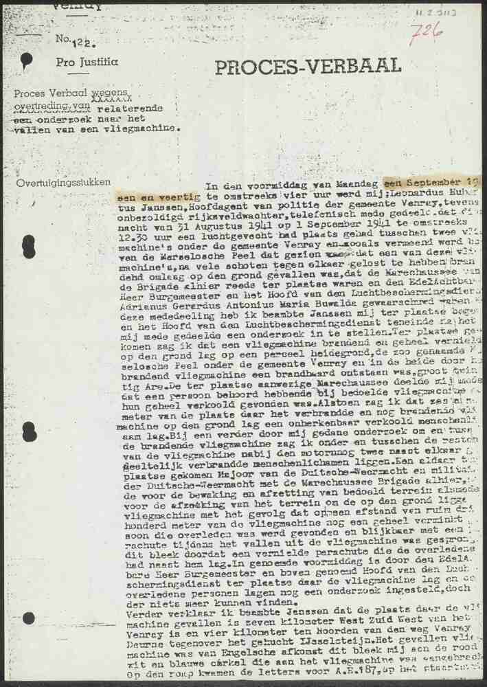 Proces-Verbaal van Politie Maarssen en Maarsseveen a...