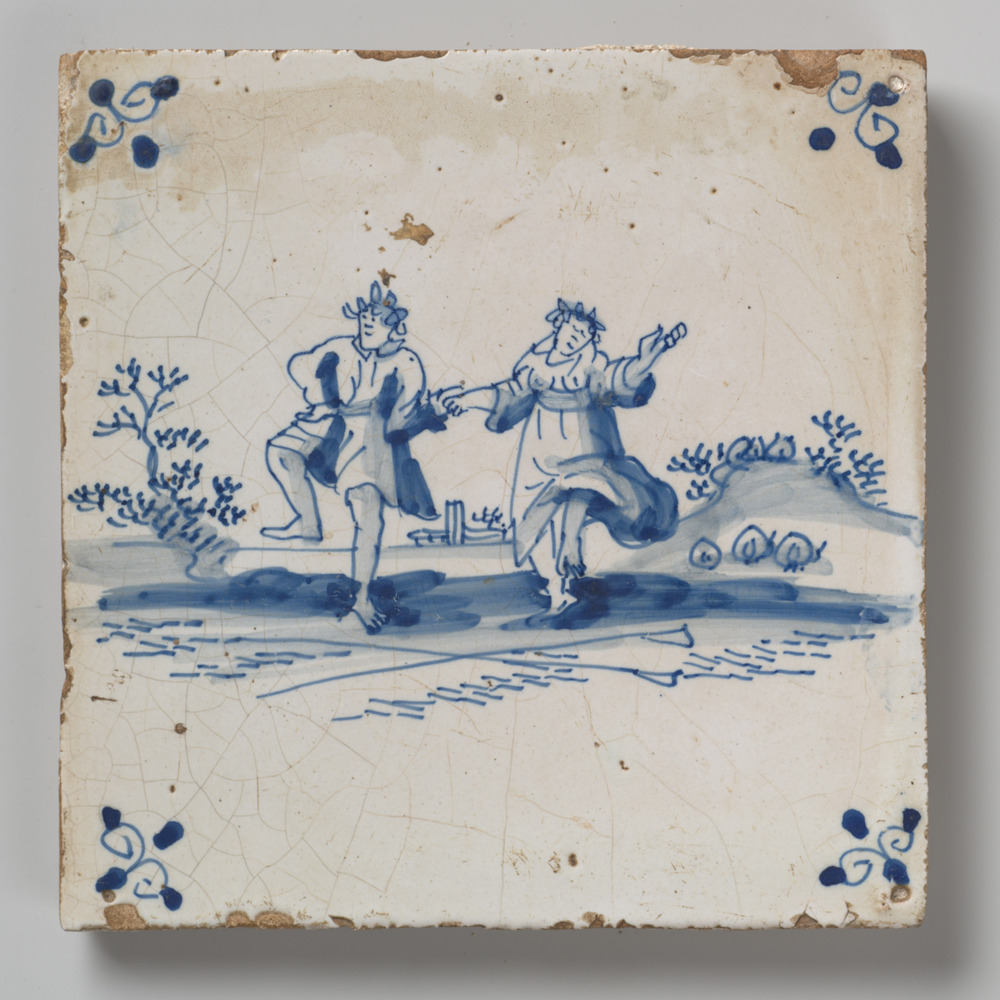 Tegelplaat van keramiek met tinglazuur, voorstellend...