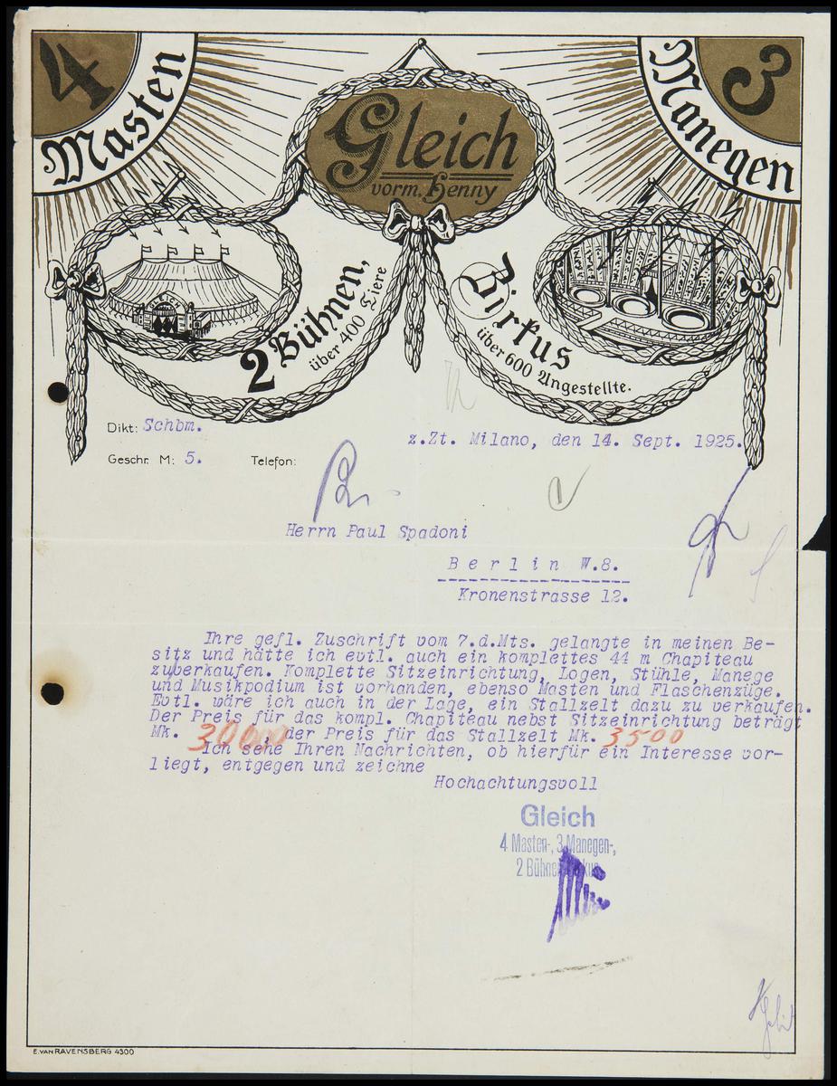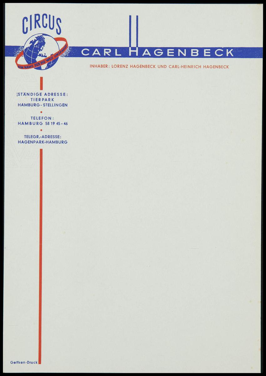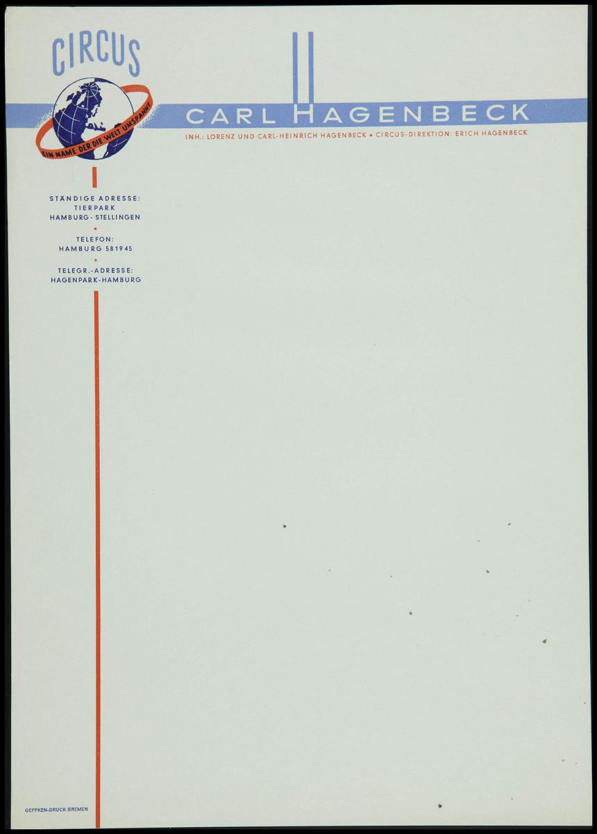 Briefhoofd Circus Carl Hagenbeck, Essen