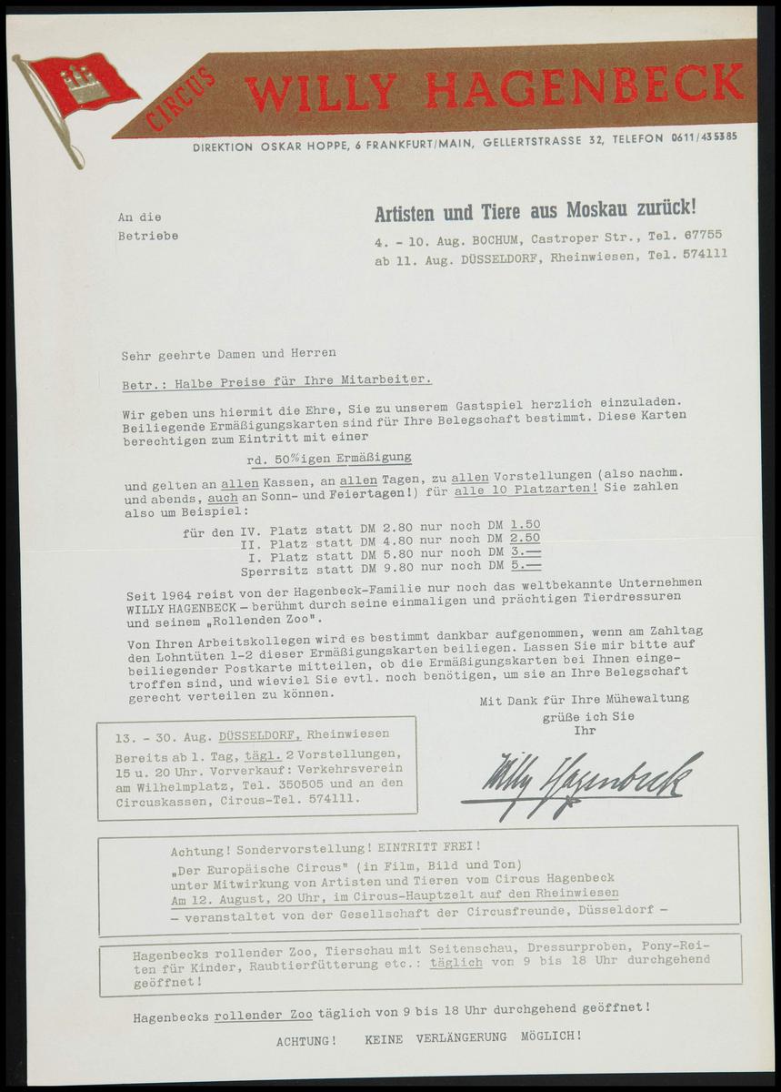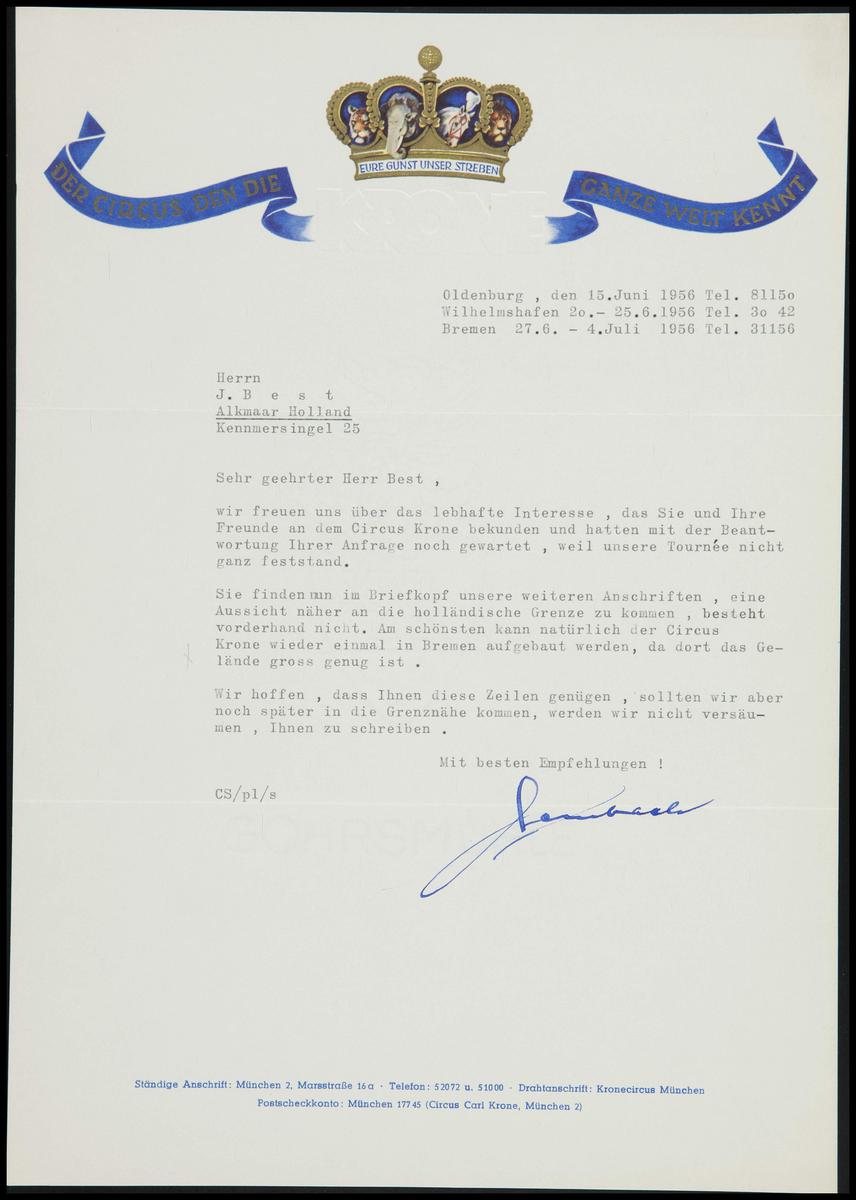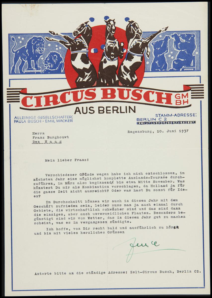 Promotiebrief Circus Willy Hagenbeck (Hoppe)