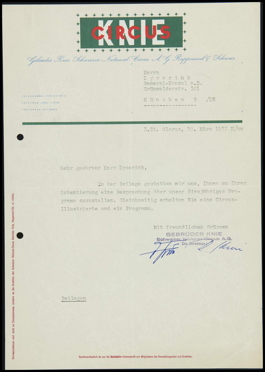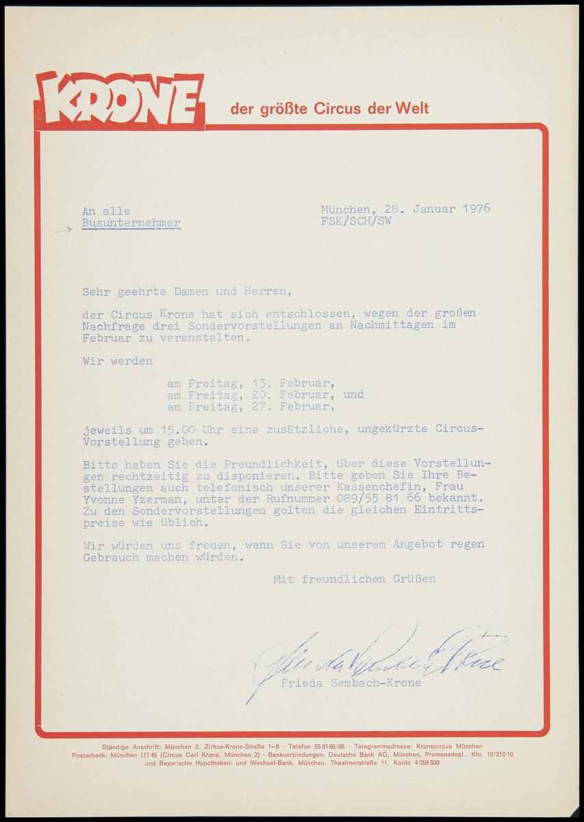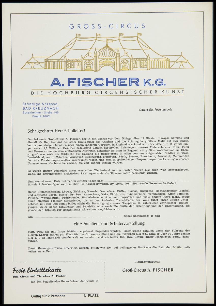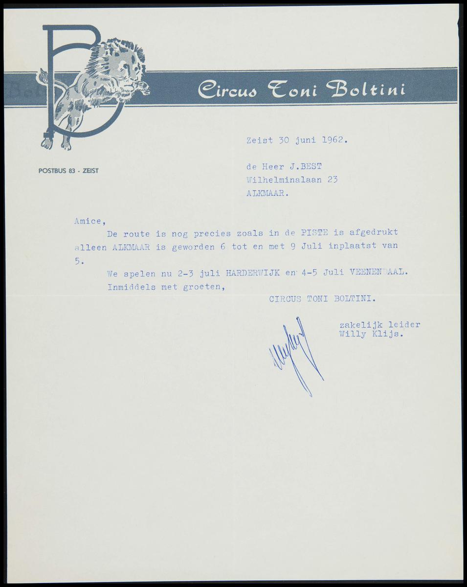 Promotiebrief Circus Willy Hagenbeck (Hoppe)