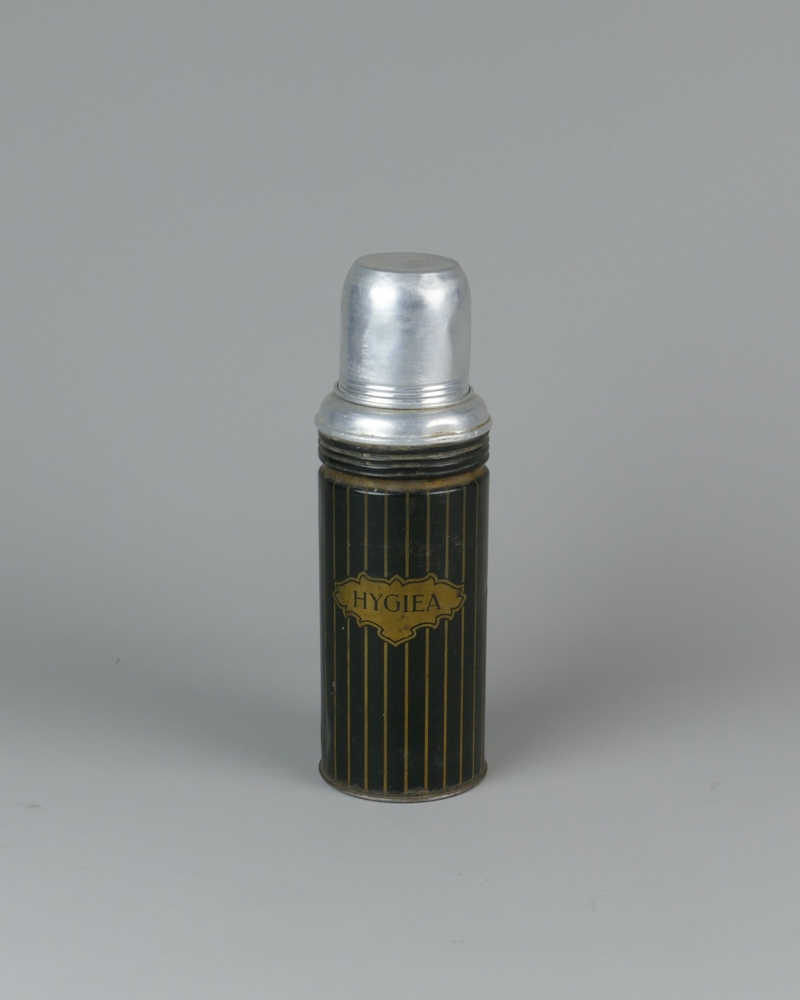 thermosfles van aluminium en blik, zwart en goudkleu...