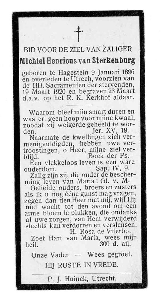 bidprent voor Michiel Henricus van Sterkenburg. Gebo...