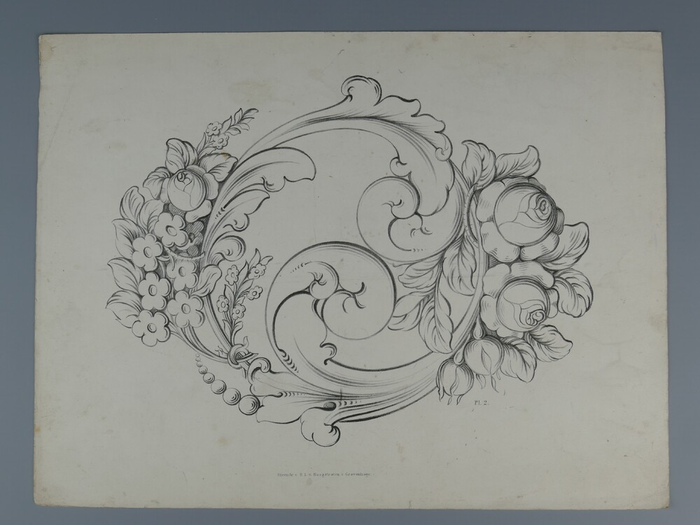 Litho, voorstellende ranken met bloemen, circa 1870
