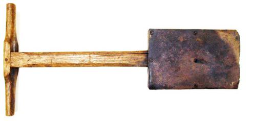 Veenspade, veenschop of baggerspade van hout gebruik...