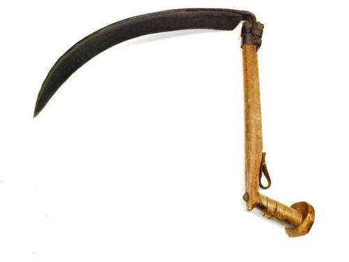 Bietenkopmes van metaal met houten steel gebruikt vo...