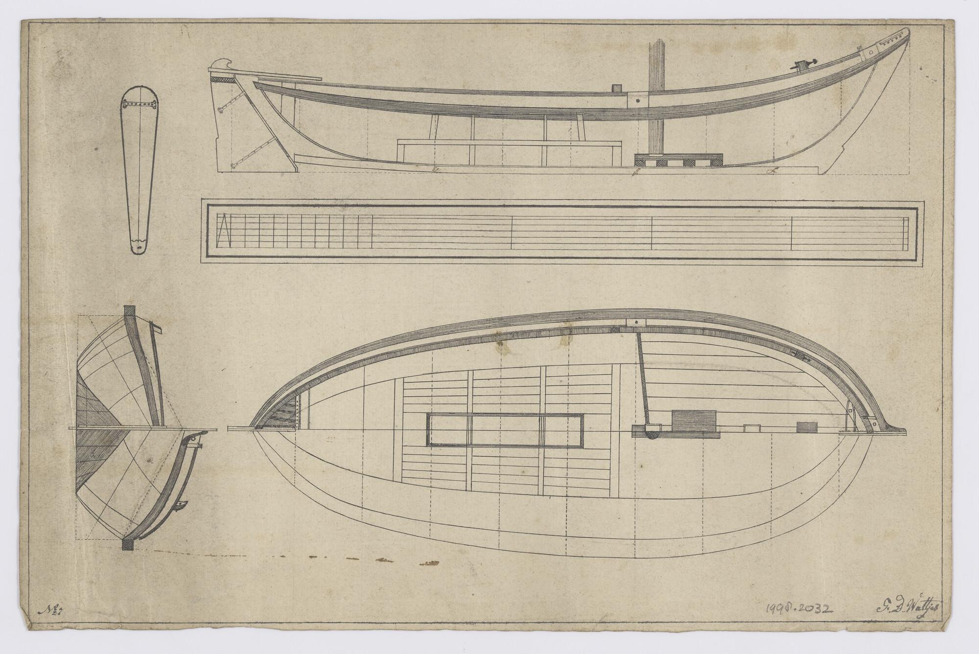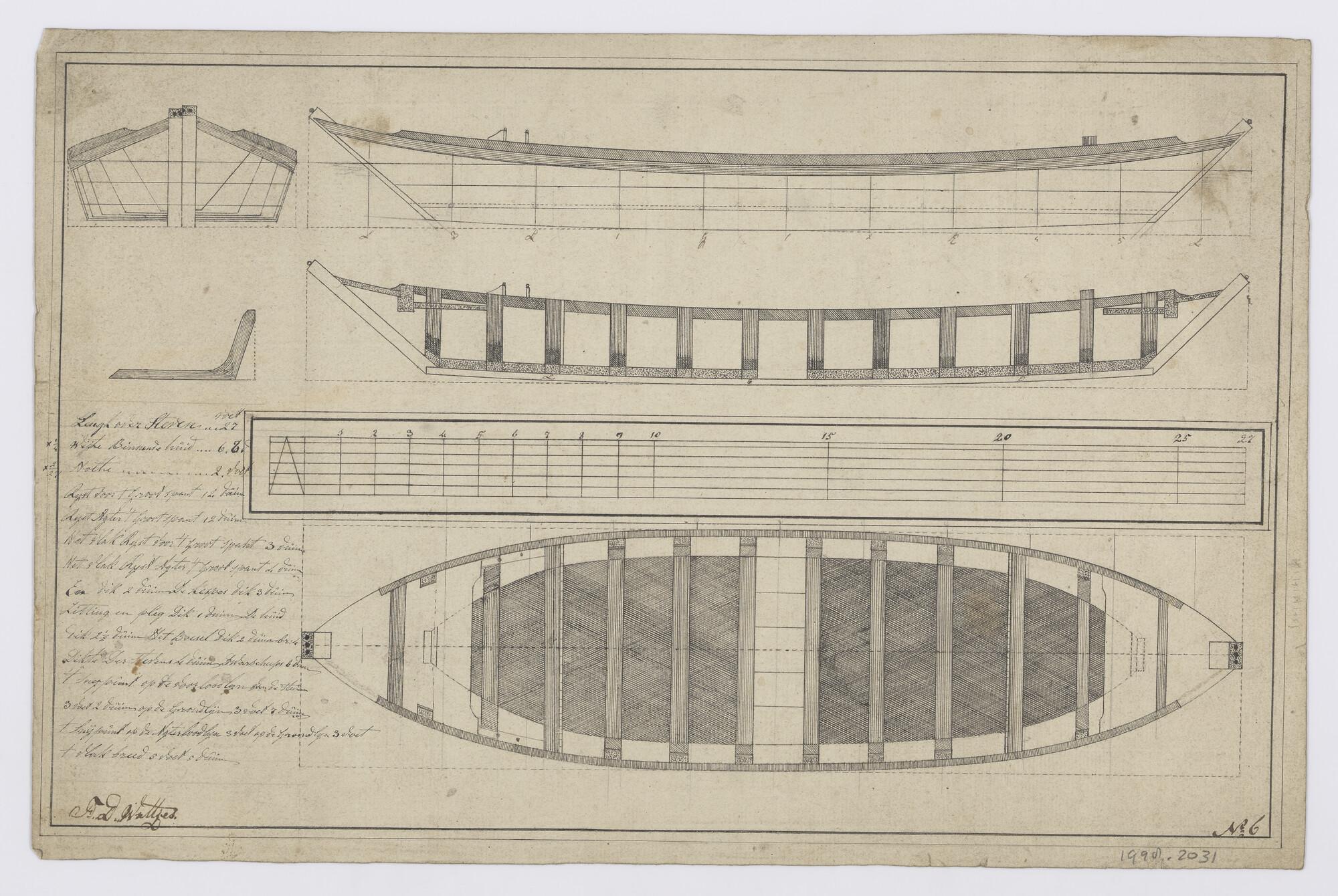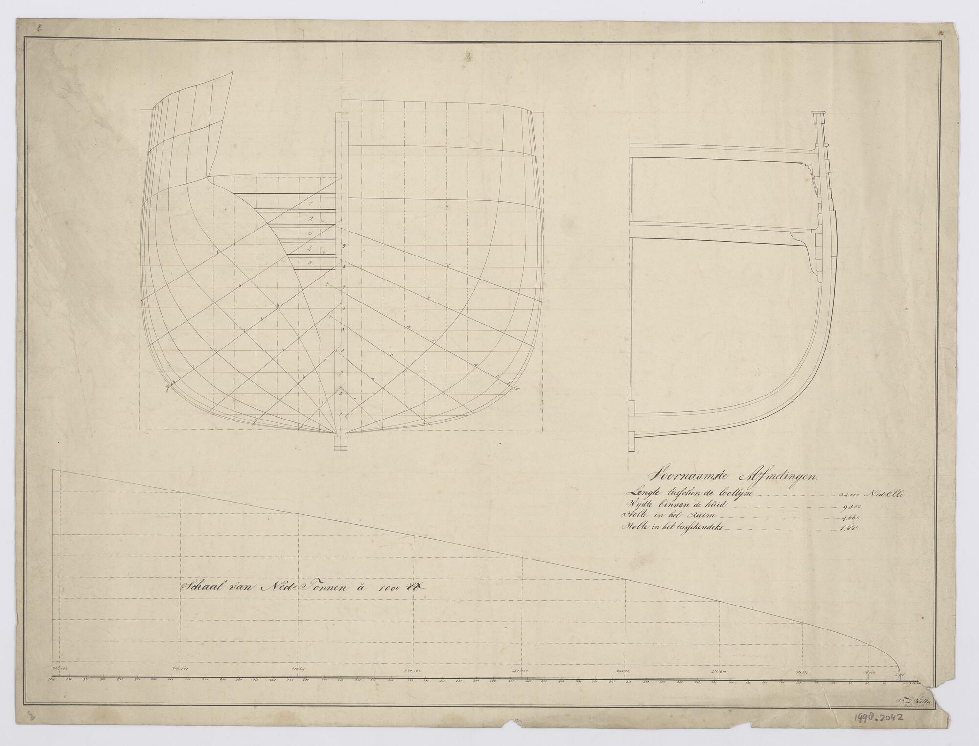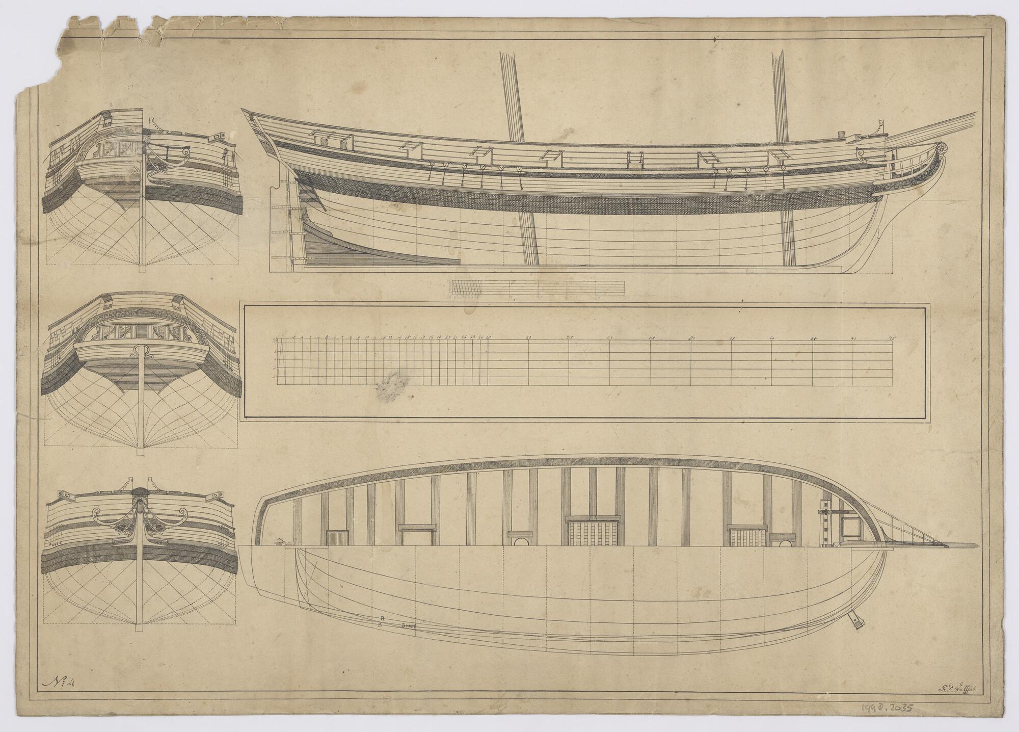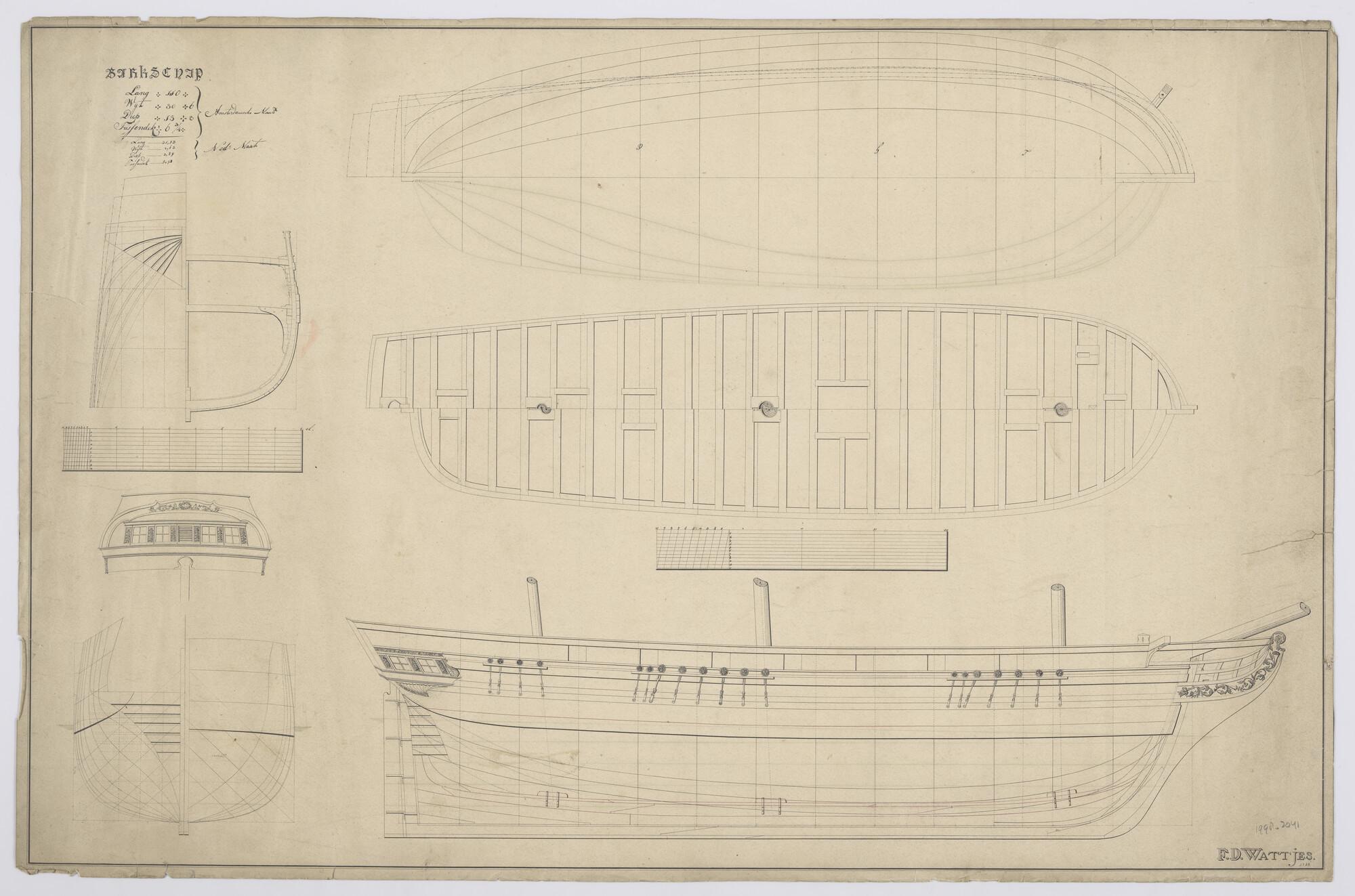 Lijnenplan van een pink van 660 Nederlandse tonnen