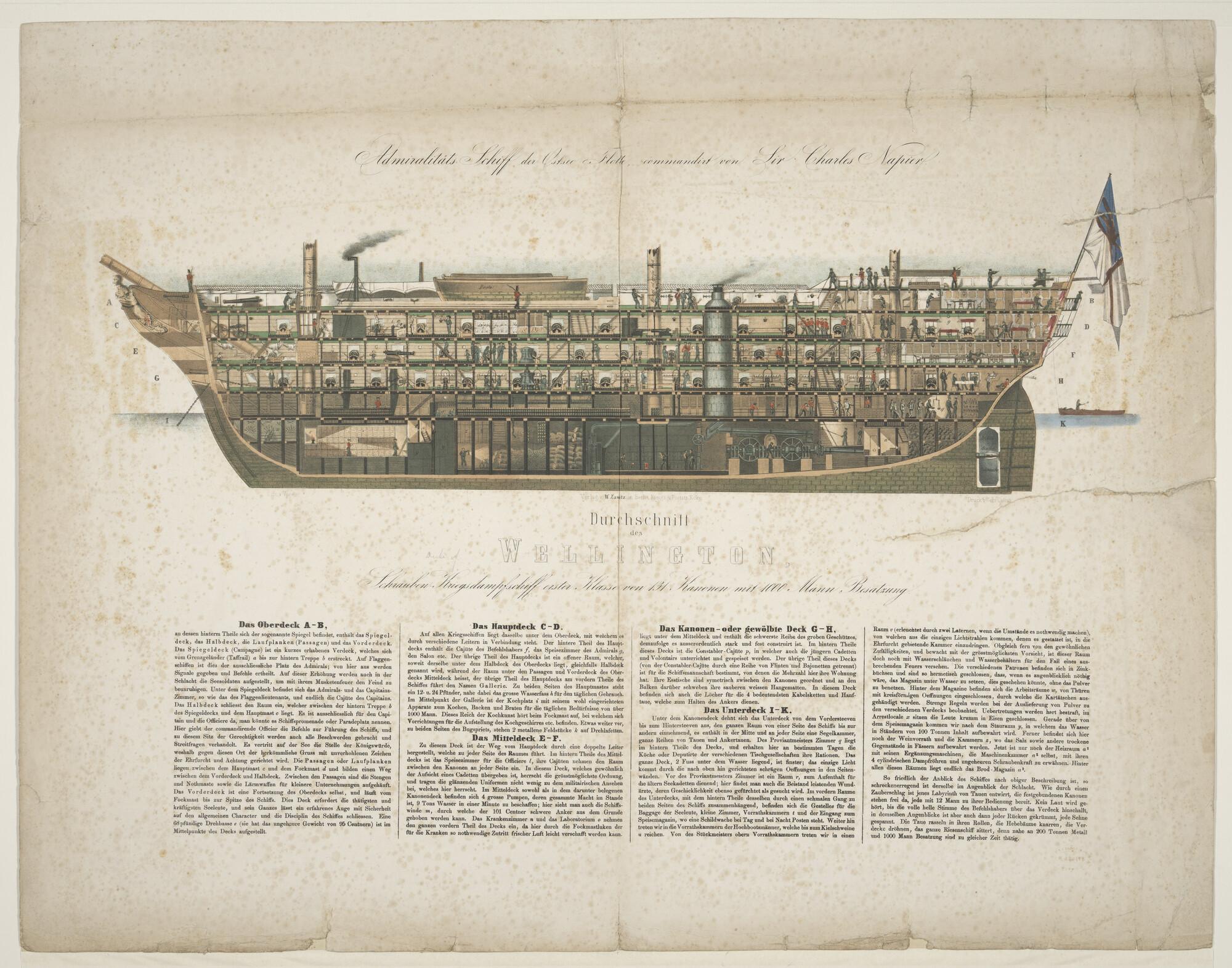 Algemeen- en lijnenplan van een rond spiegeljacht me...