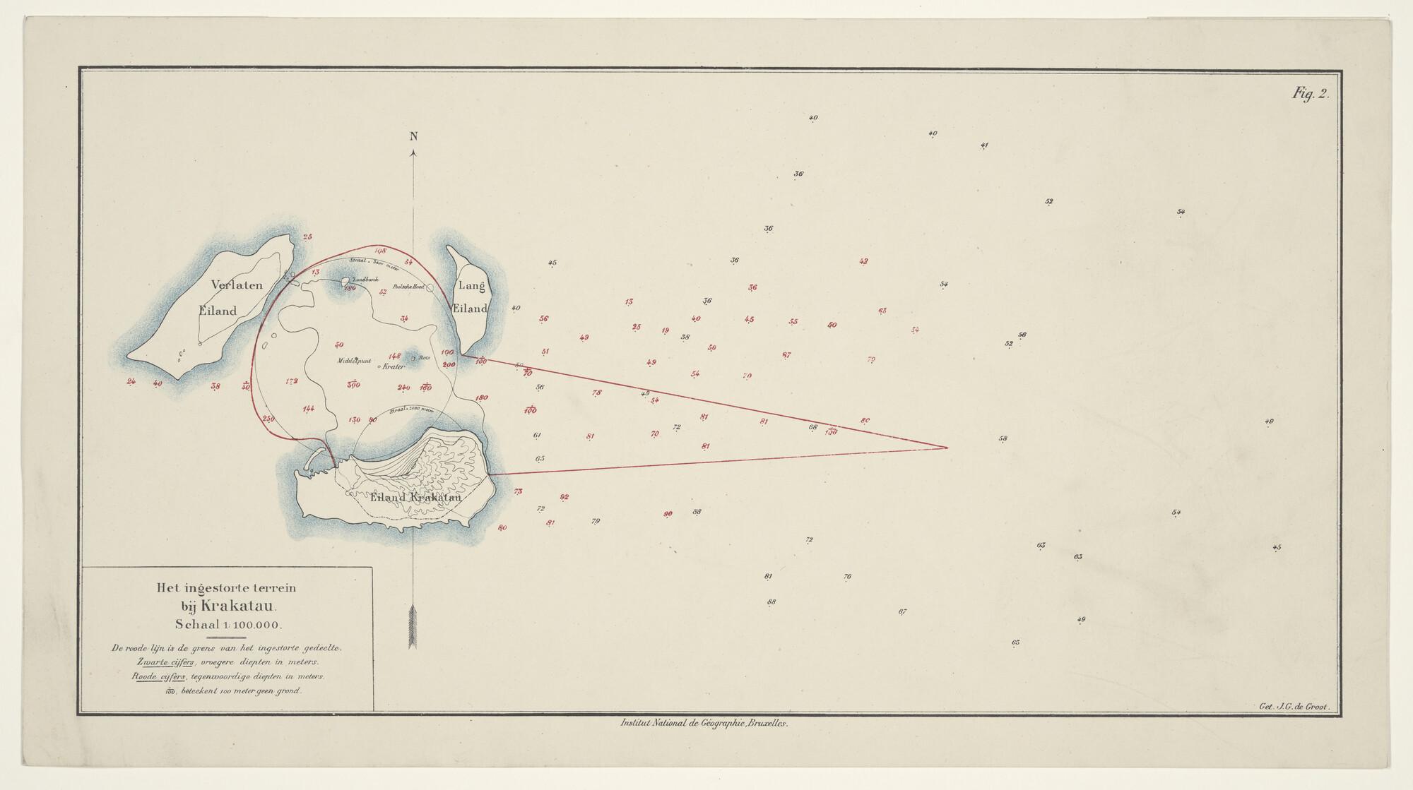 Gekleurde kaart van Straat Sunda, naar gegevens van ...