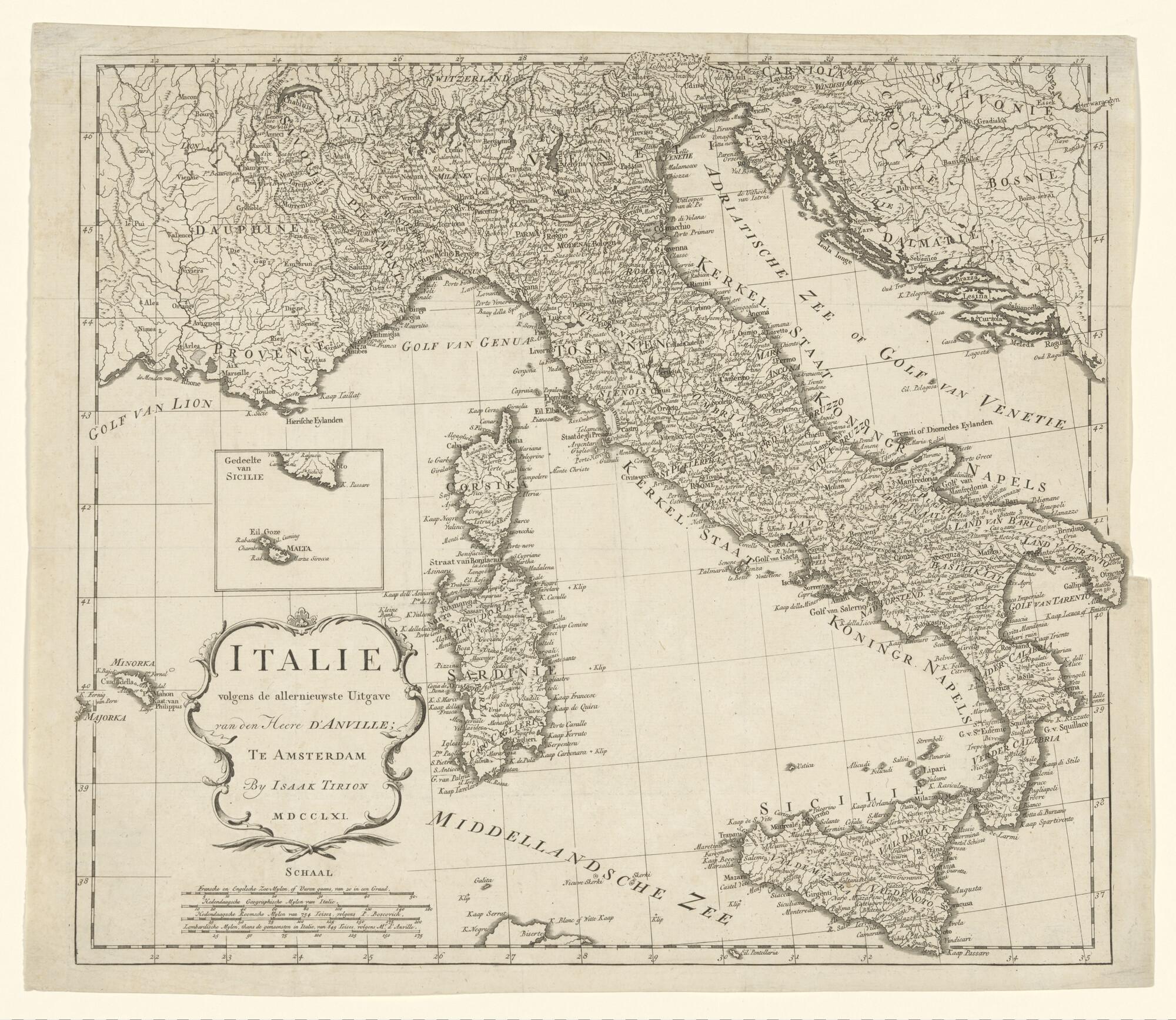 Kaart van Italië volgens Jean Baptiste Bourguignon d...