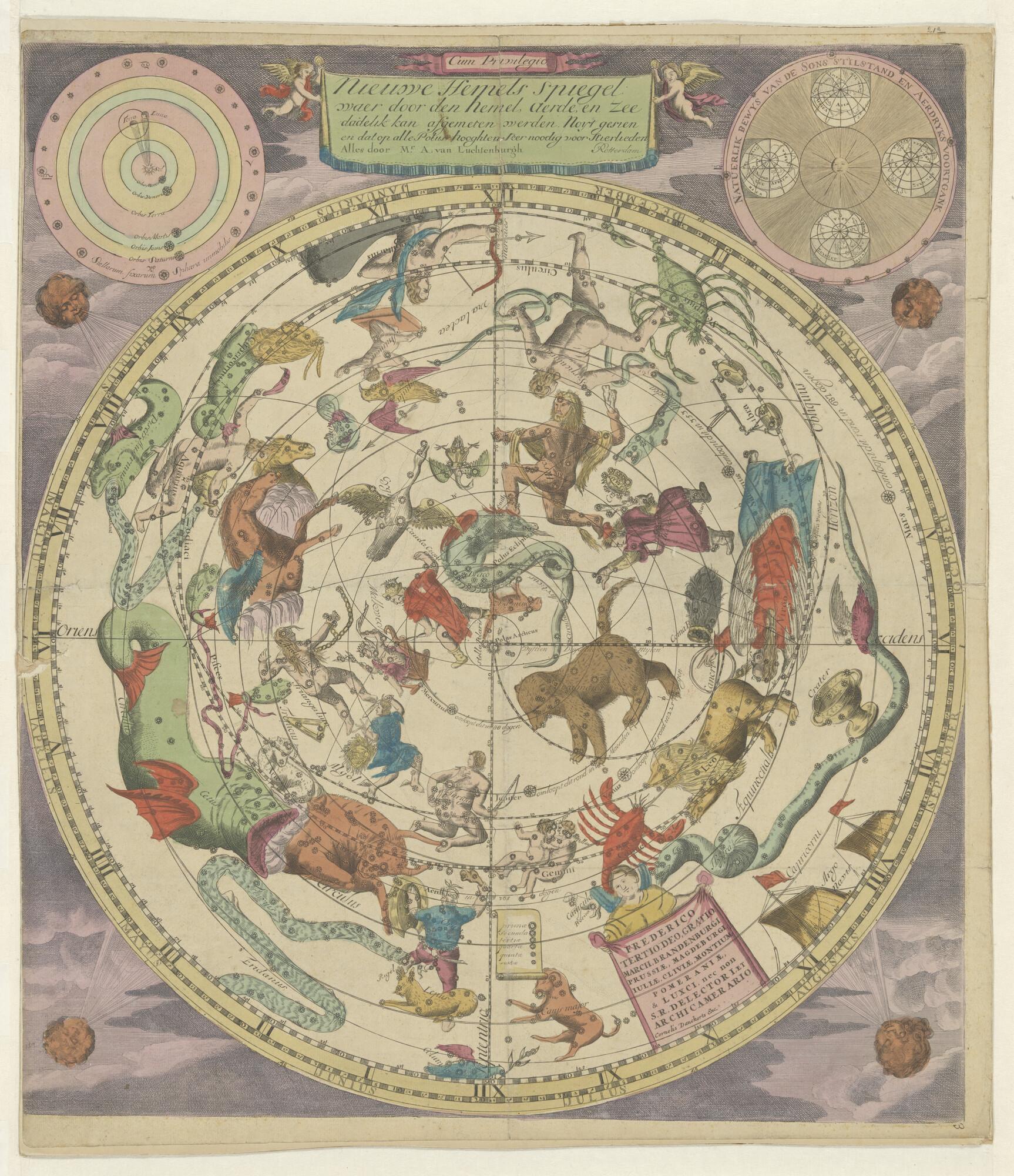 Met de hand gekleurde sterrenkaart door Andreas van ...