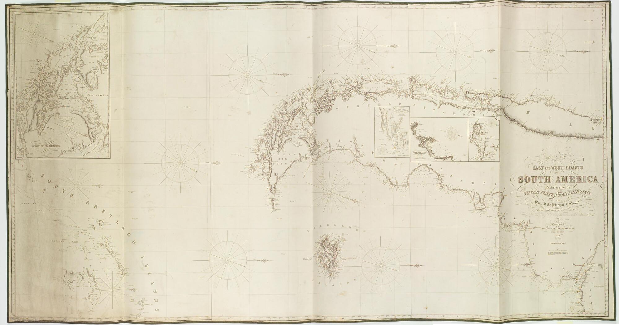 Kaart van de oost- en westkust van Zuid-Amerika naar...