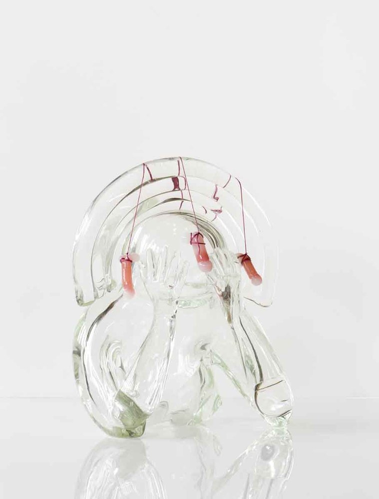 Zelfportret met hand in glas