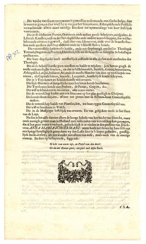 Gedicht van Jacob Cats op Anna Maria van Schurman