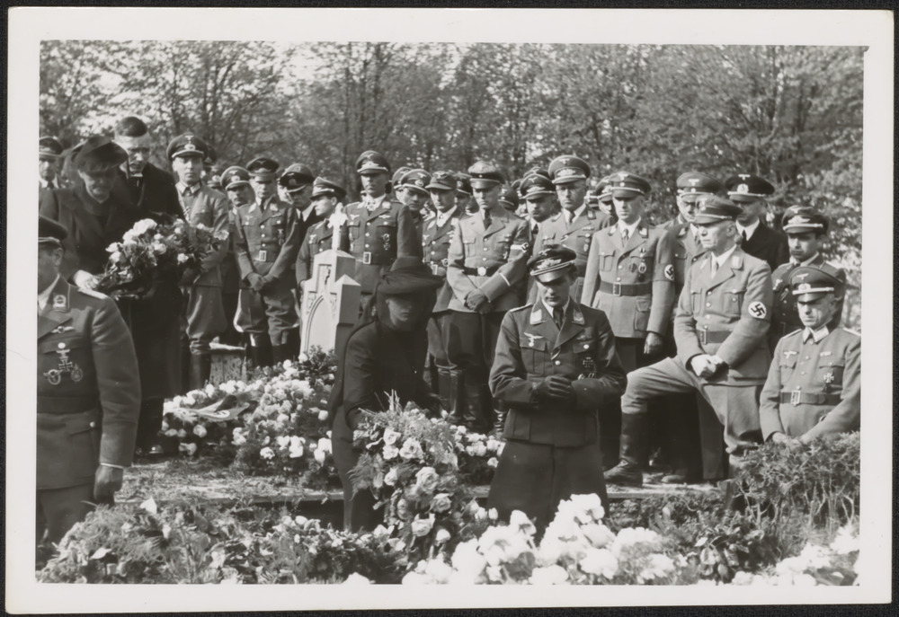 Duitse militairen bij de begrafenis van Walter Oesau...