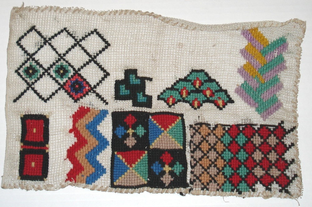 oefenlap naaien, schoolstuk van katoen 1913-1917