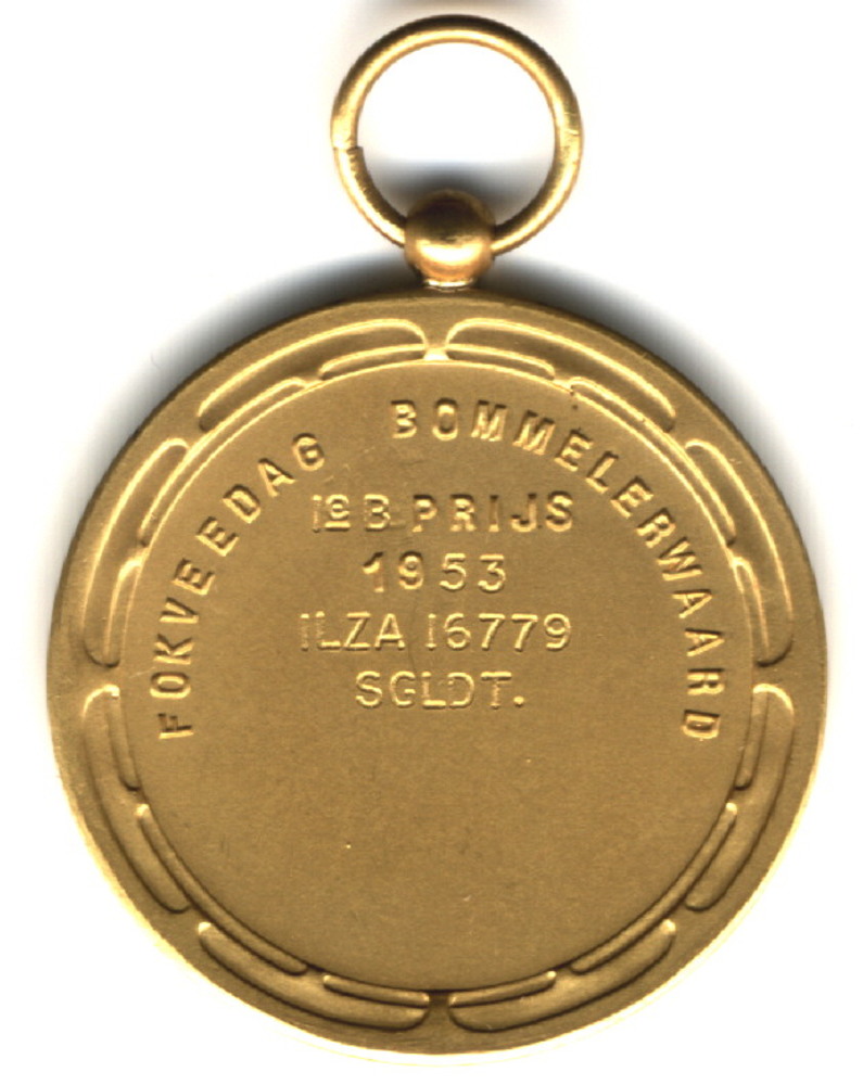 Verzilverde, metale medaille, fokveedag, met ophangoog