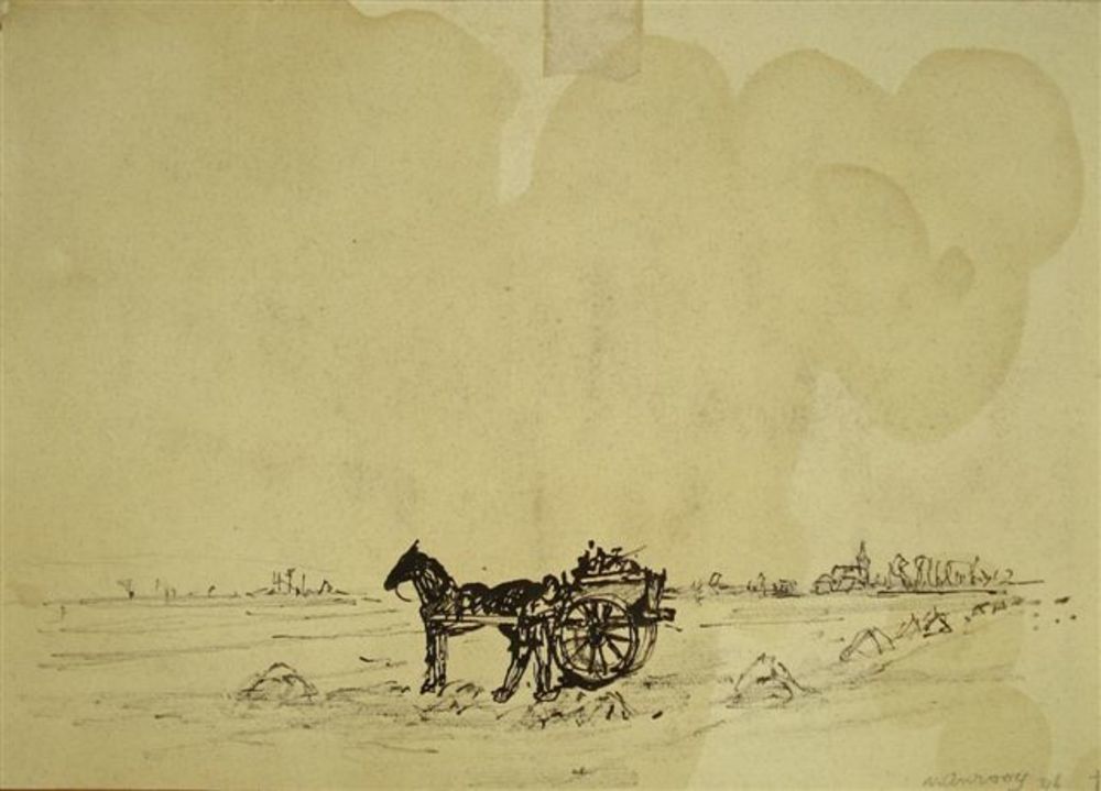 Pentekening, man met kar en paard , Jan van Anrooy 1942
