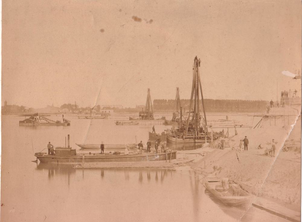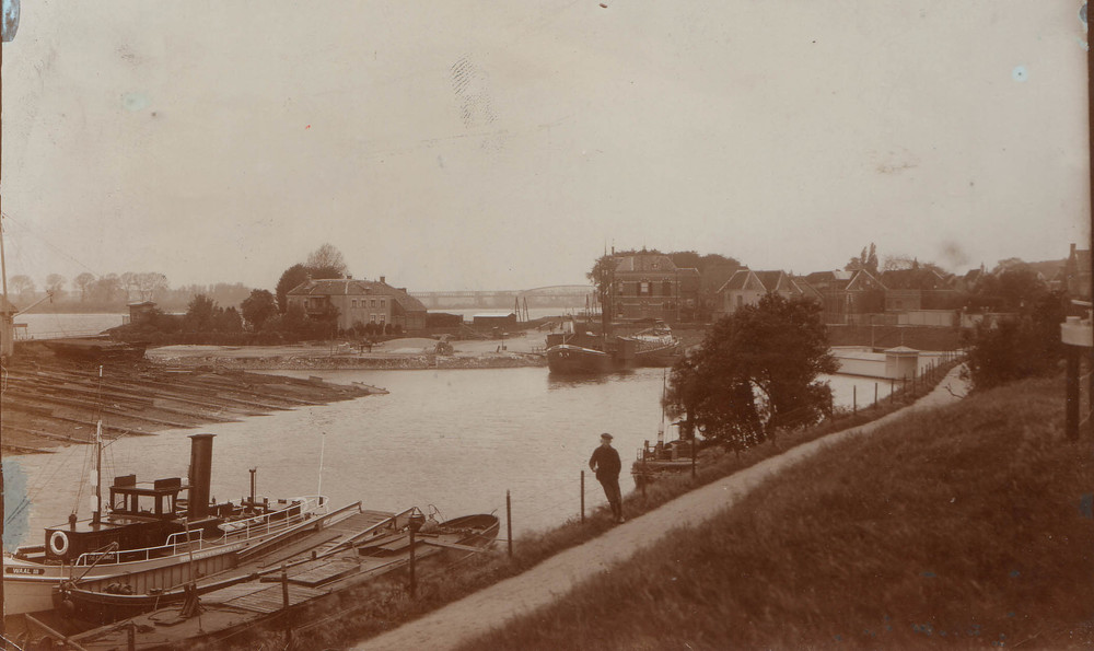 Waalgezicht met baggerschip,bij Zaltbommel.