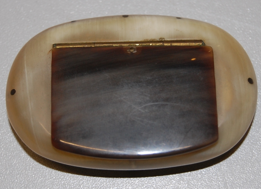 Plastic beige ovaal doosje met donkerbruin dekseltje...