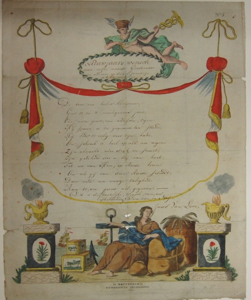 Prent met Nieuwjaarswens aan grootvader en oudoom. V...