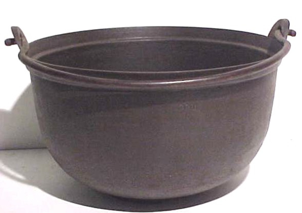 hengselpan. Ronde diepe gietijzeren kookpan op stand...