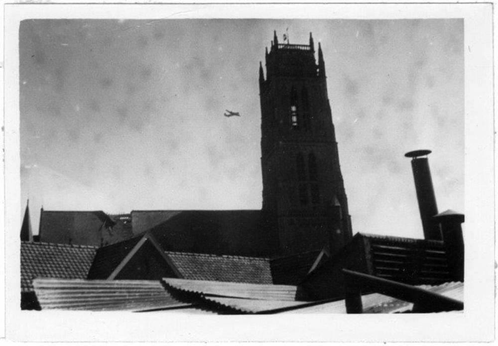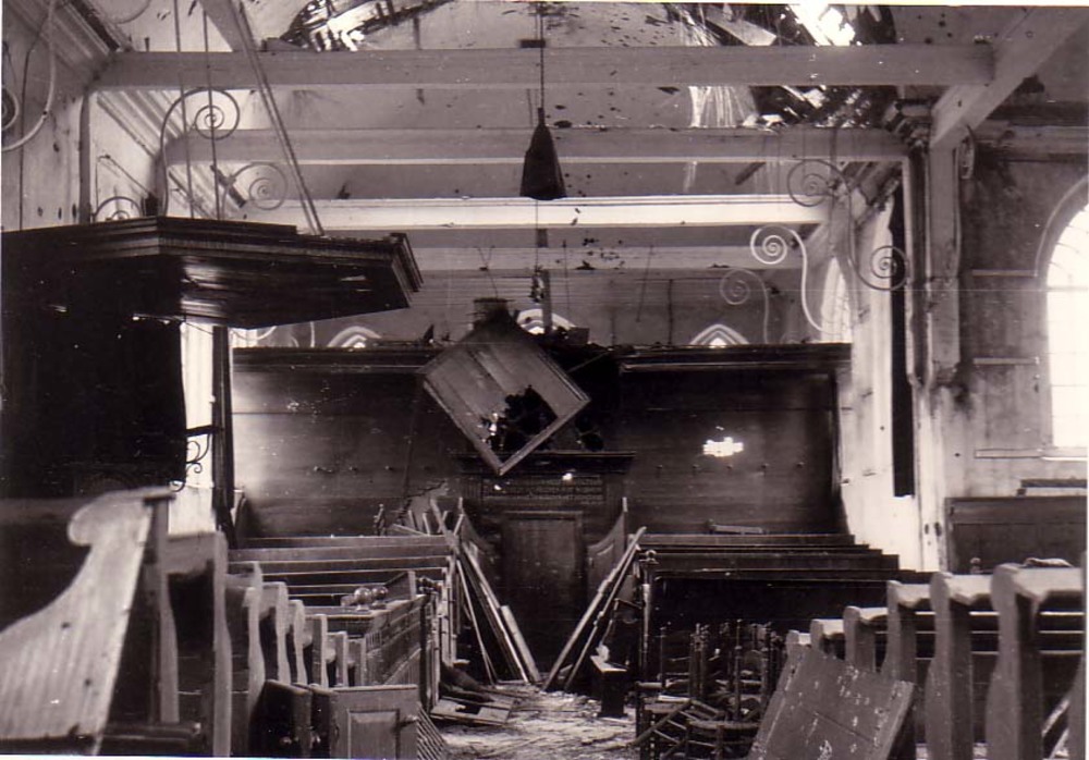 Vernietigde kerktoren van de Herv,Kerk te Ammerzoden.