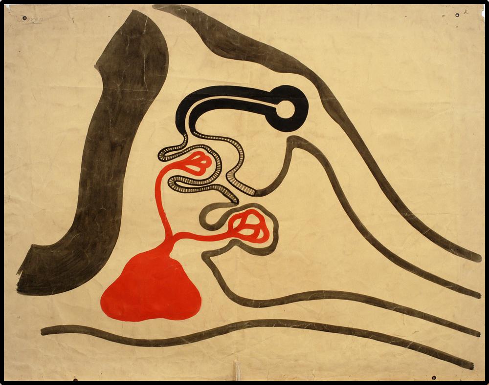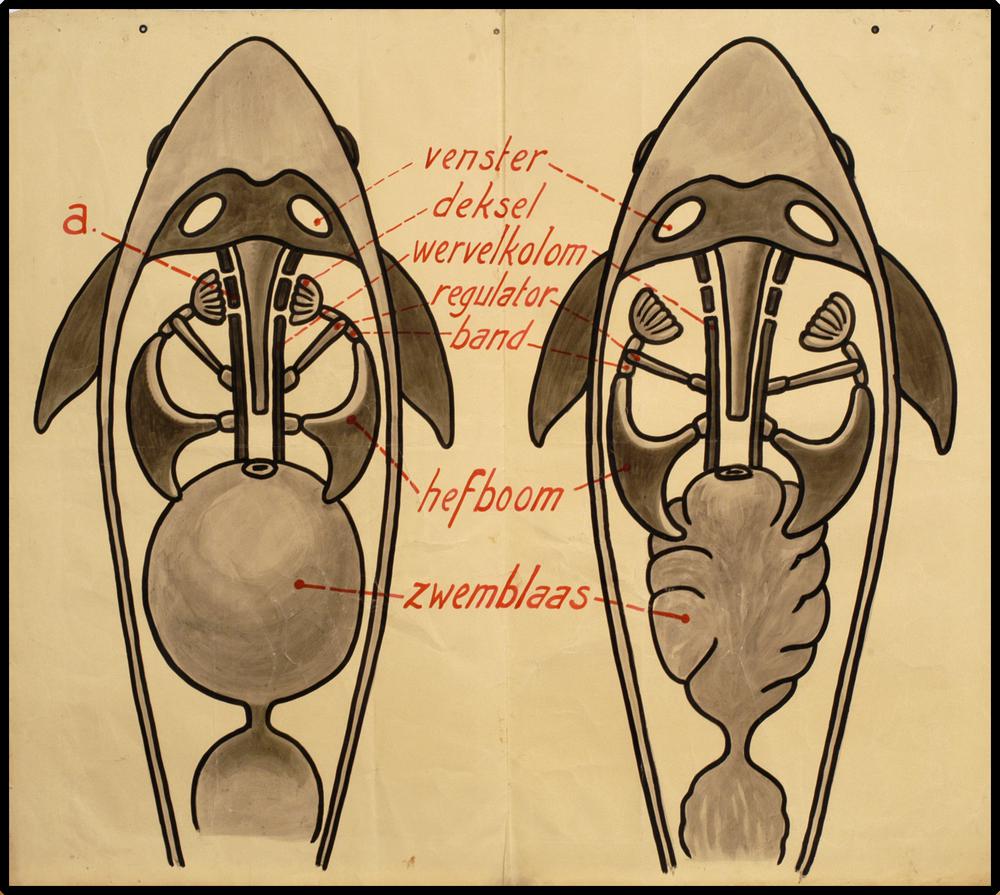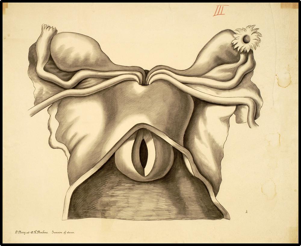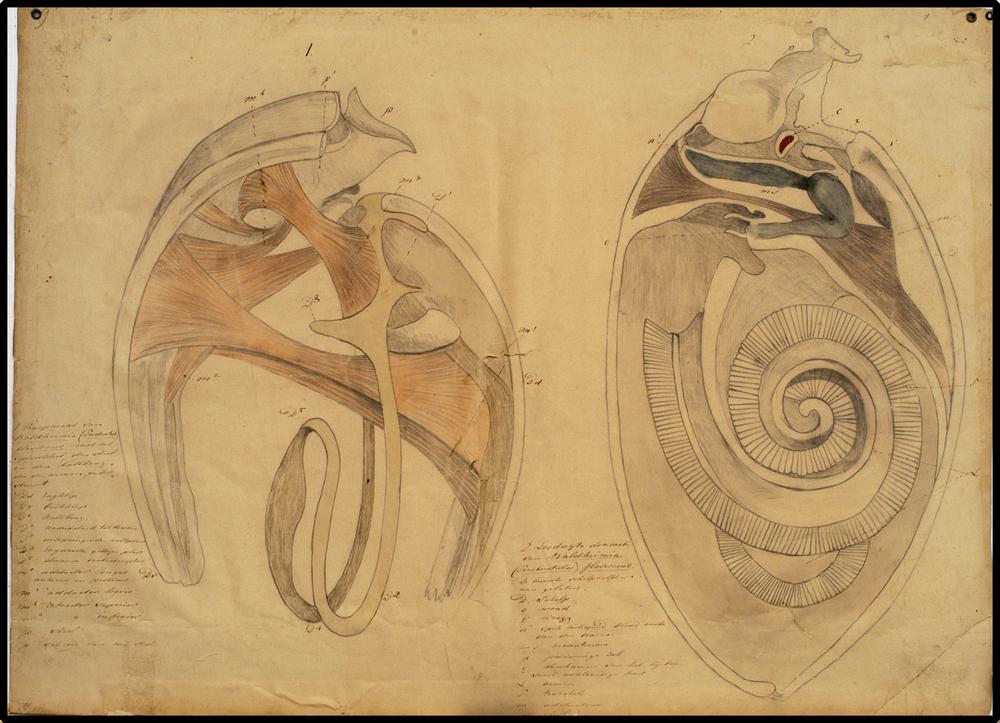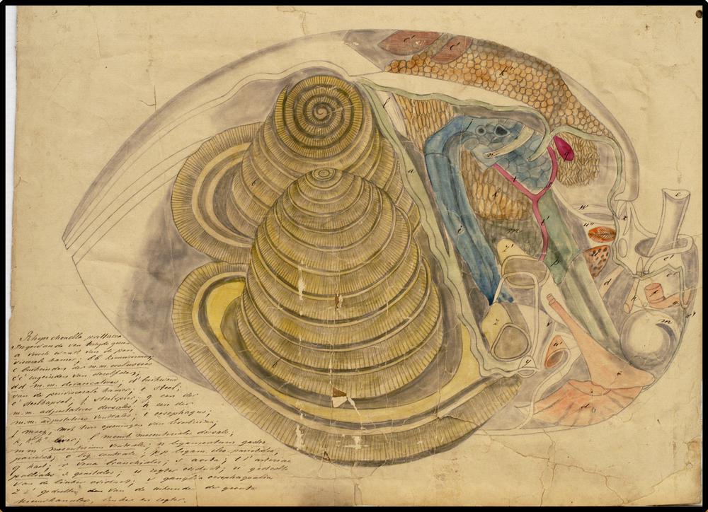 Rhynchonella poittacea / Ingewanden van terzijde gez...