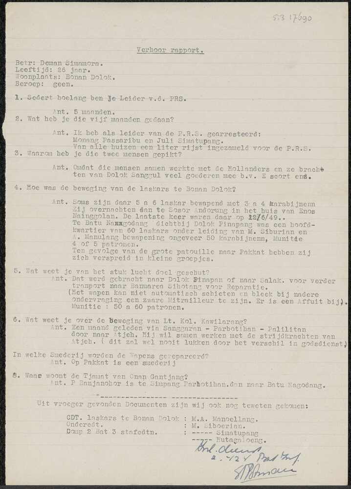 Verhoorrapport van Deman Simamora (leider PRS), onge...