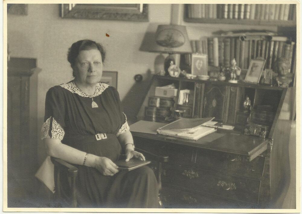 Foto mevr Mussert in werkkamer